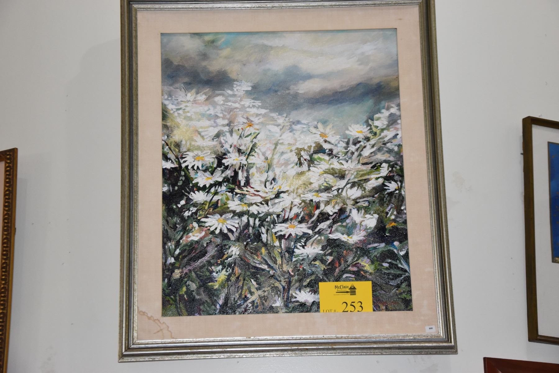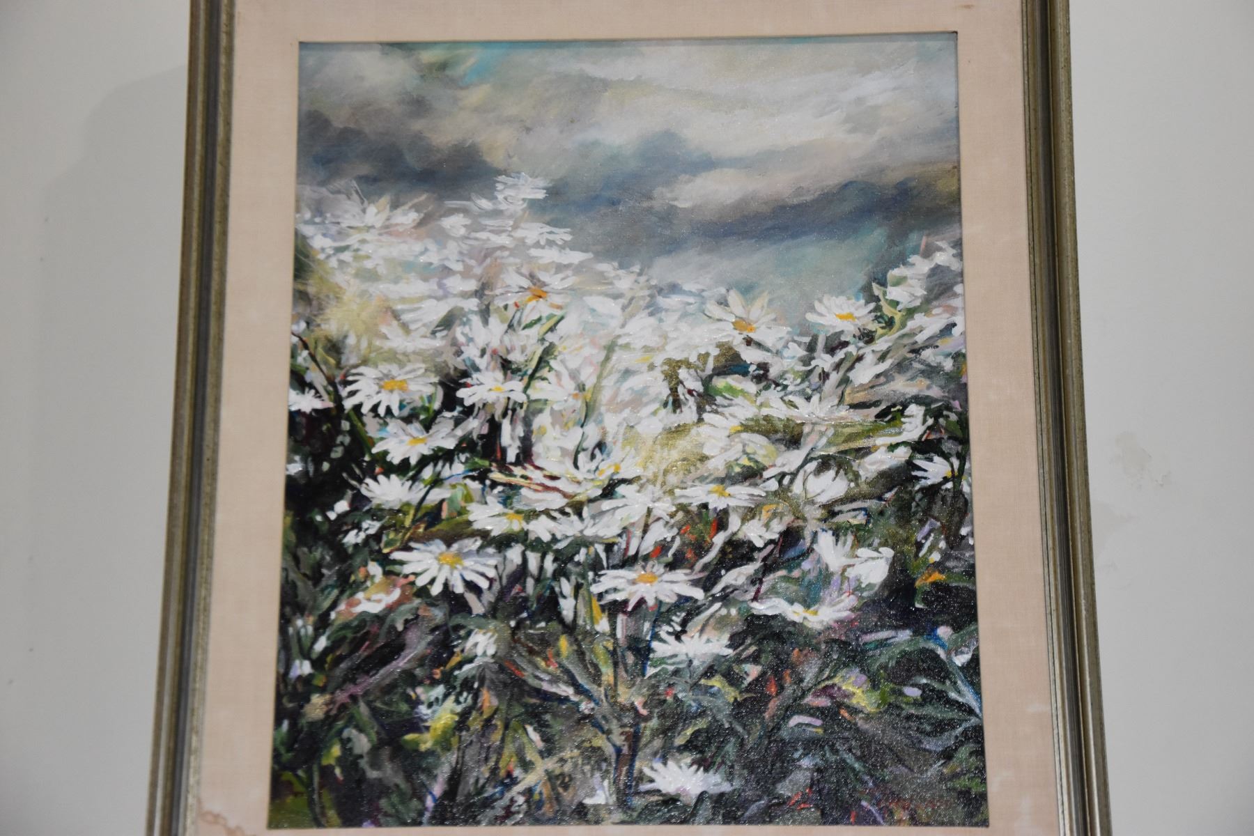 FRAMED OIL ON CANVAS, DAISIES; SIGNED (26" X 30")