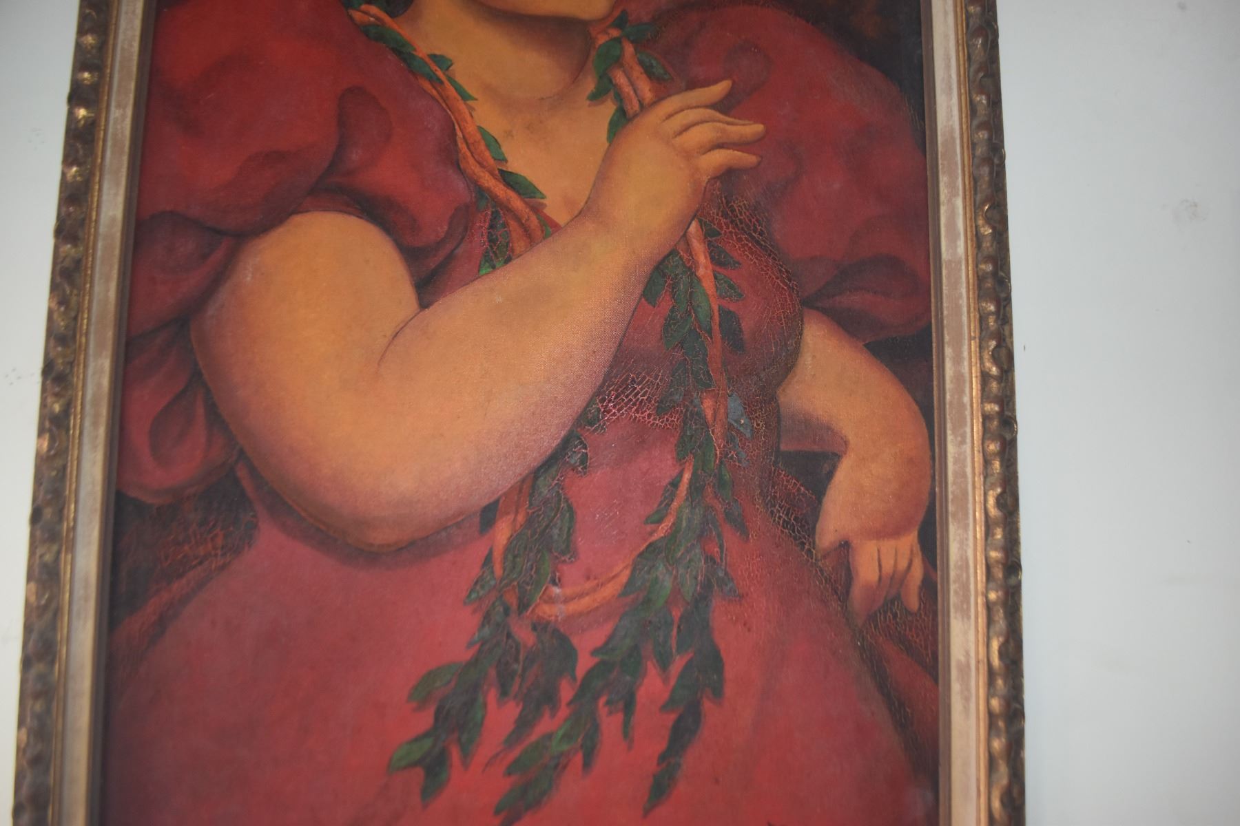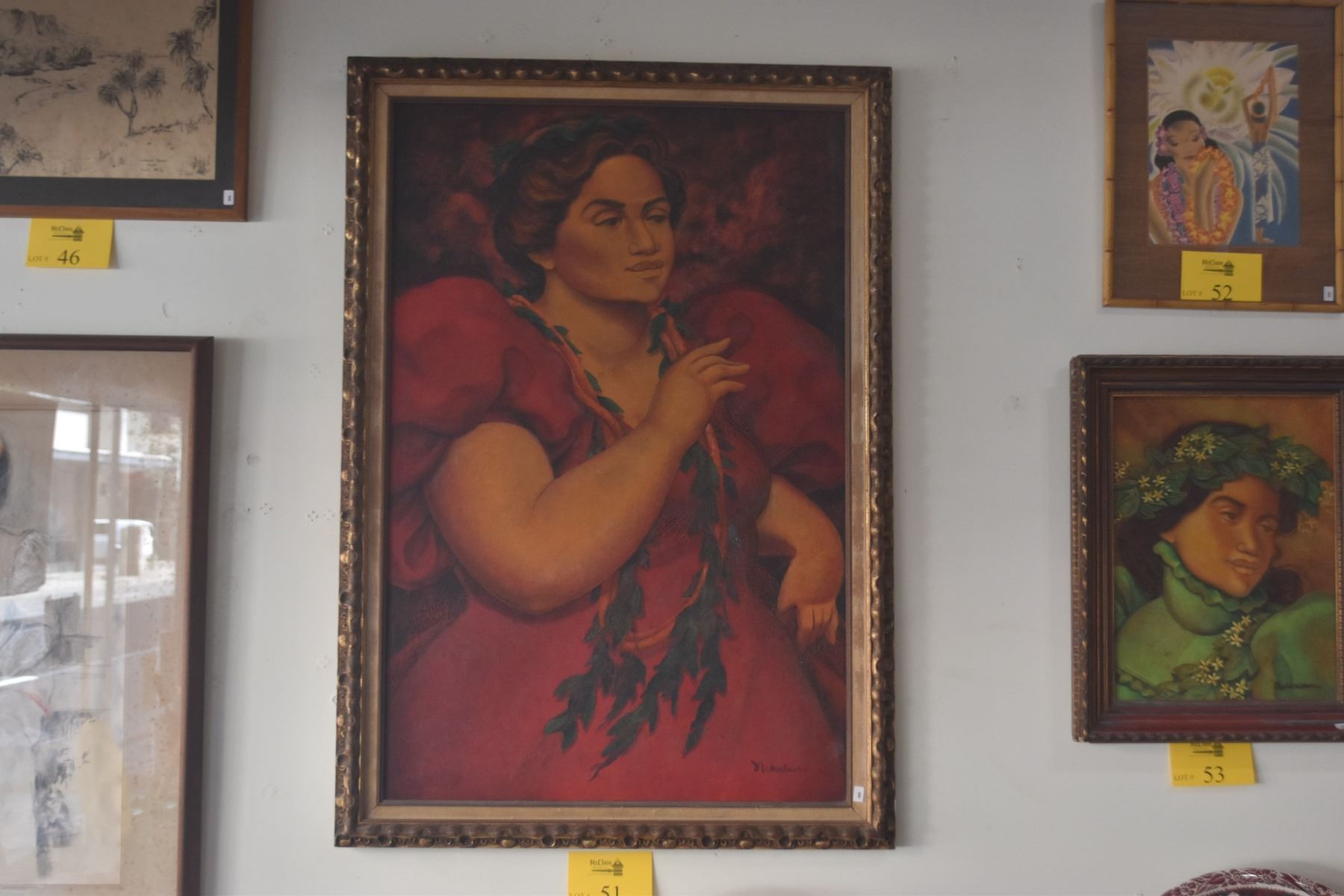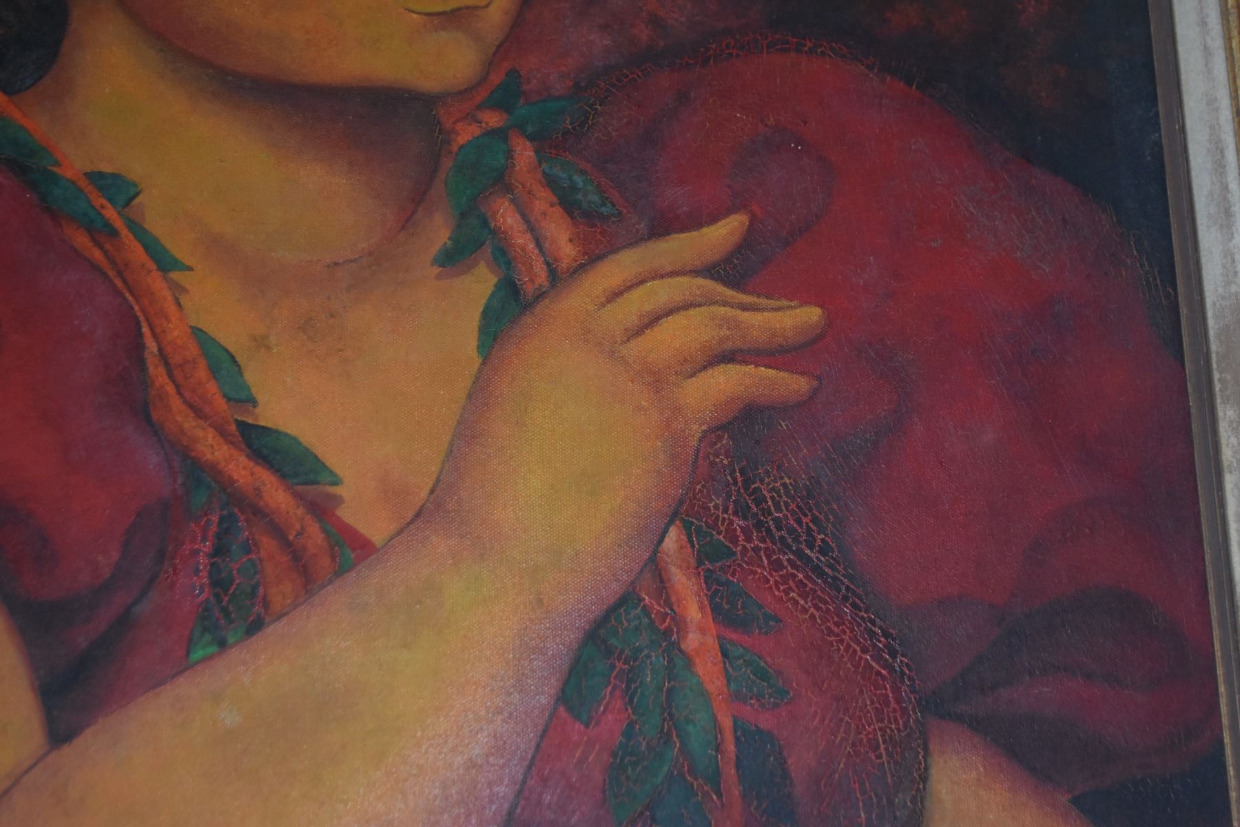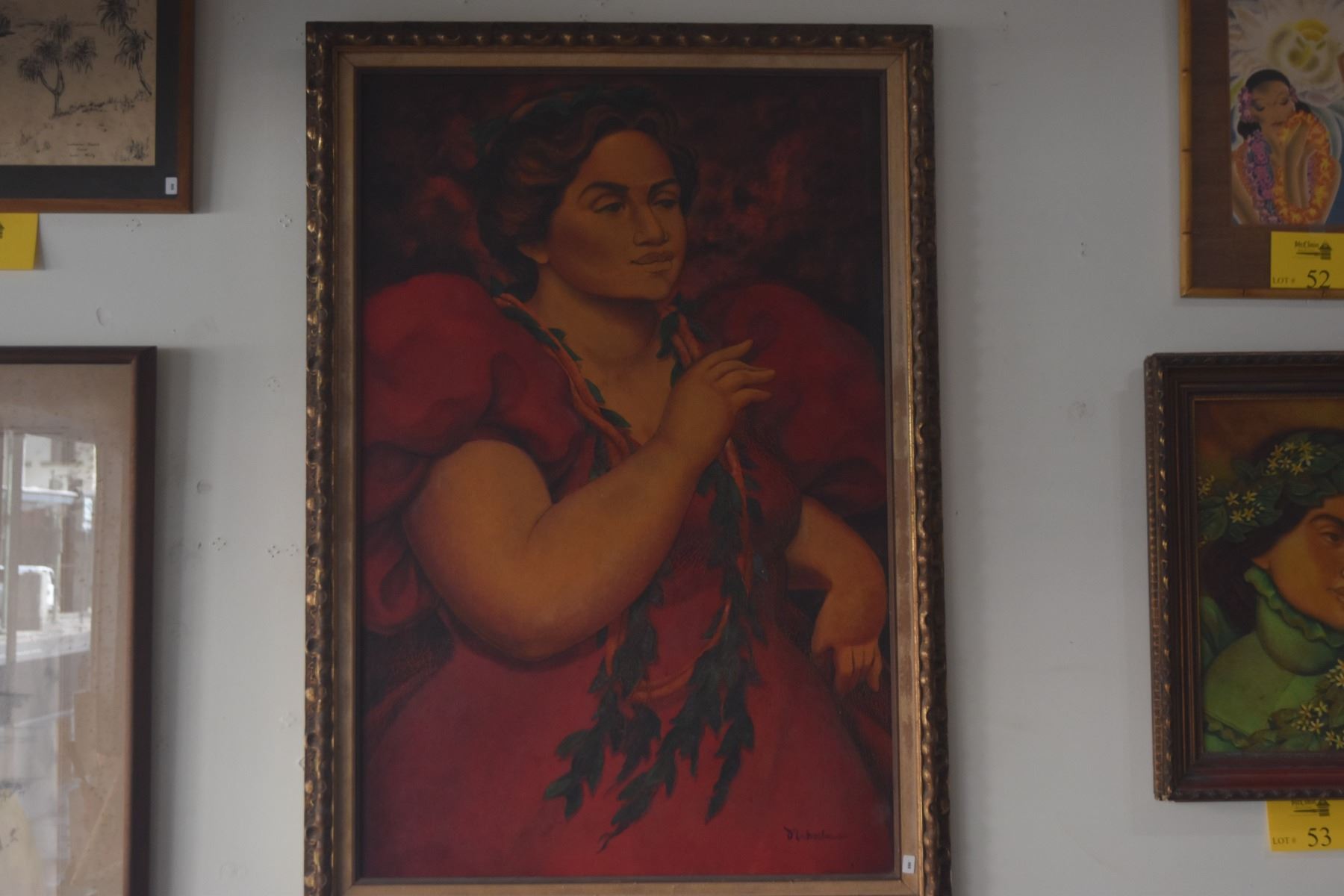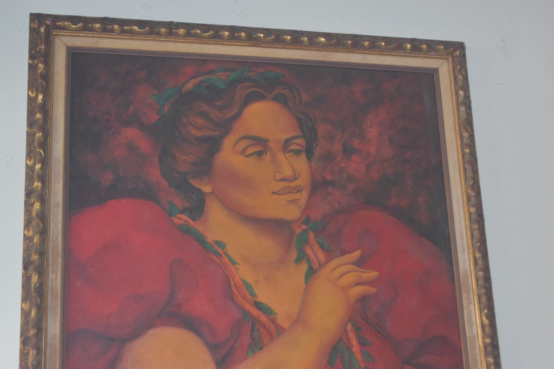 FRAMED OIL ON CANVAS, HAWAIIAN LADY W/LEI; SIGNED NAHO'OLEWA (ERNEST) (28" X 40")