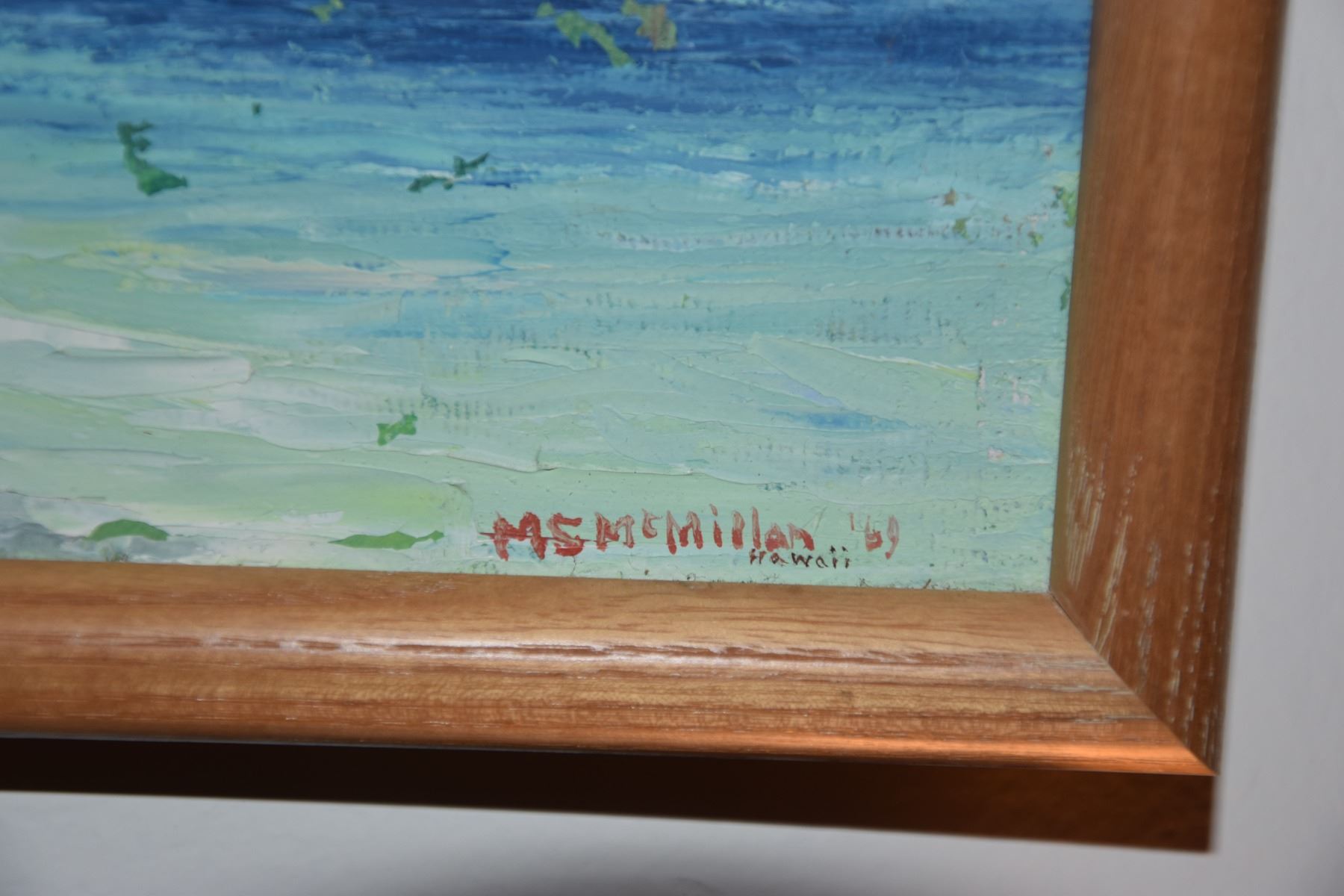 FRAMED OIL ON CANVAS, "KAILUA SHORE"; MARGARET S. MCMILLAN 1969 (13" X 10")