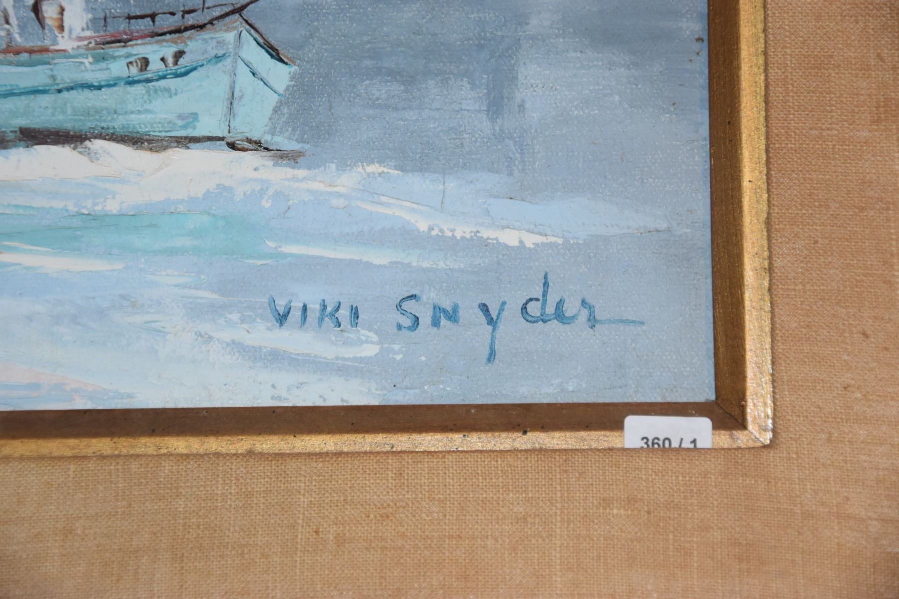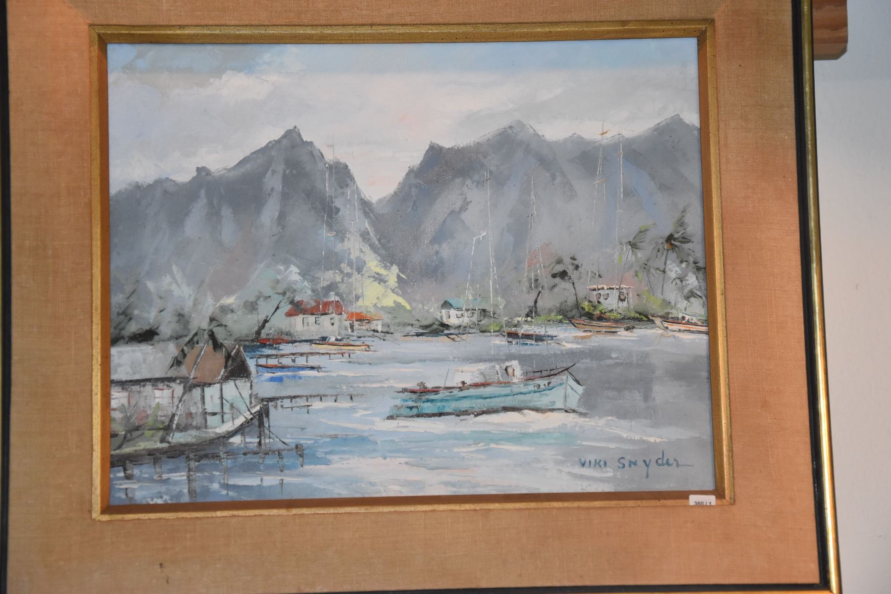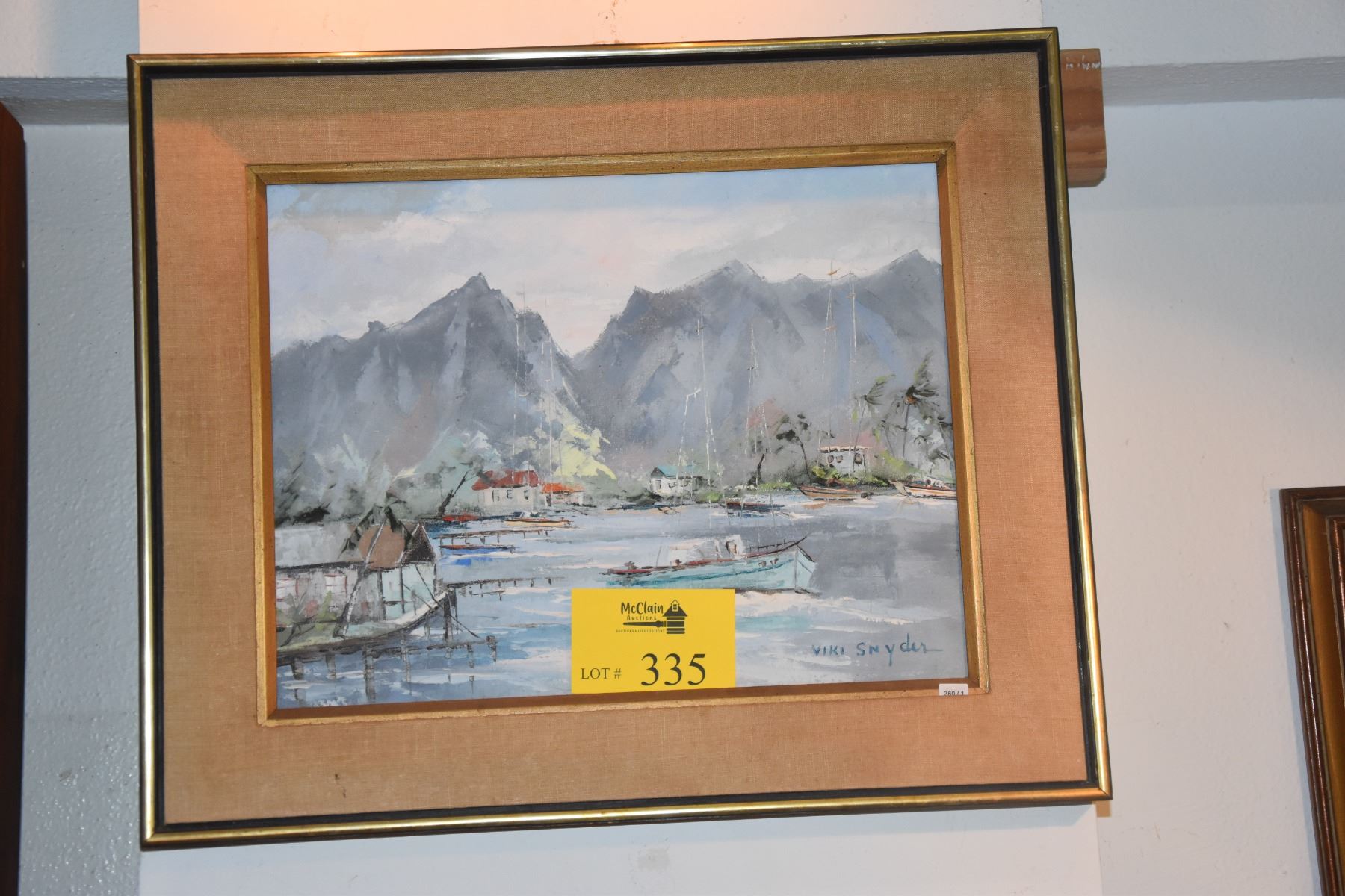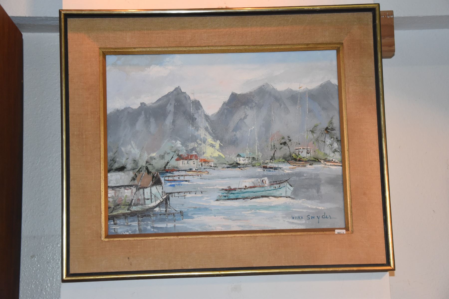 FRAMED OIL ON CANVAS, "KANEOHE BAY, OAHU"; SIGNED VIKI SNYDER (VIKI SNYDER 4-78 ON THE BACK OF CANVAS) (23 3/4" X 19 3/4")