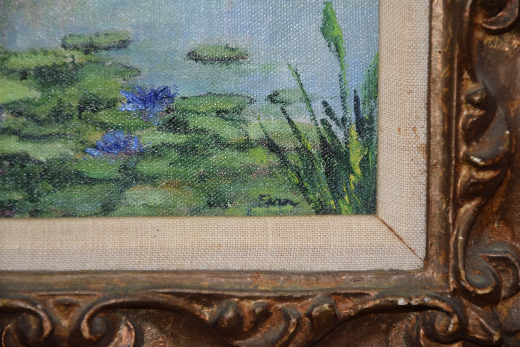 FRAMED OIL ON CANVAS, "LILIES AT WAIMEA"; FERN PIETSCH (13" X 11")