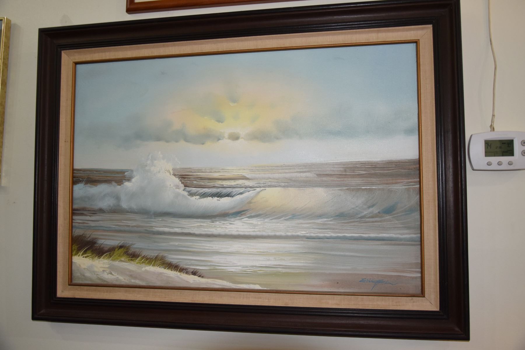 FRAMED OIL ON CANVAS; SIGNED (43" X 31")
