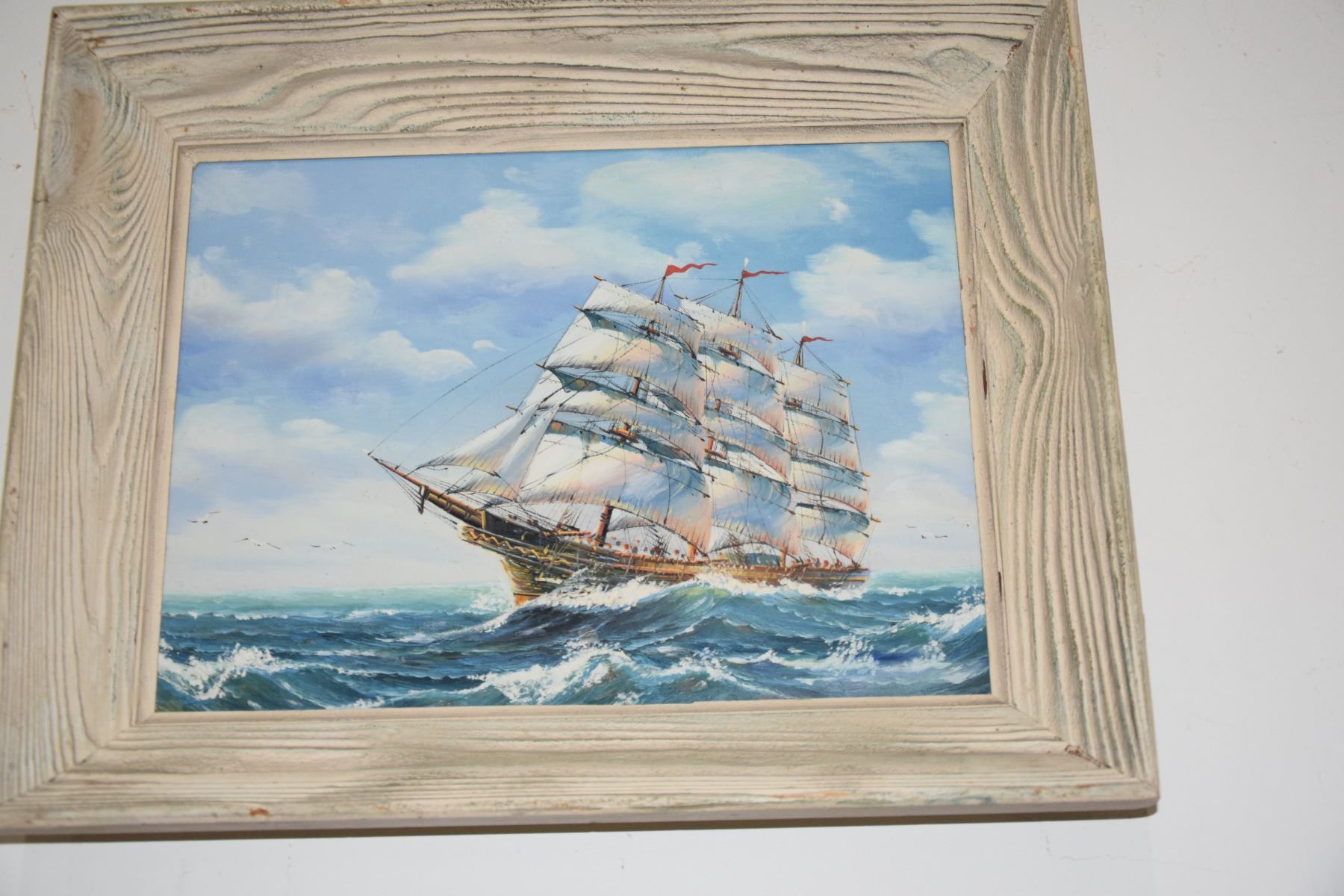 FRAMED OIL ON CANVAS, "TALL SHIP" (16" X 20")
