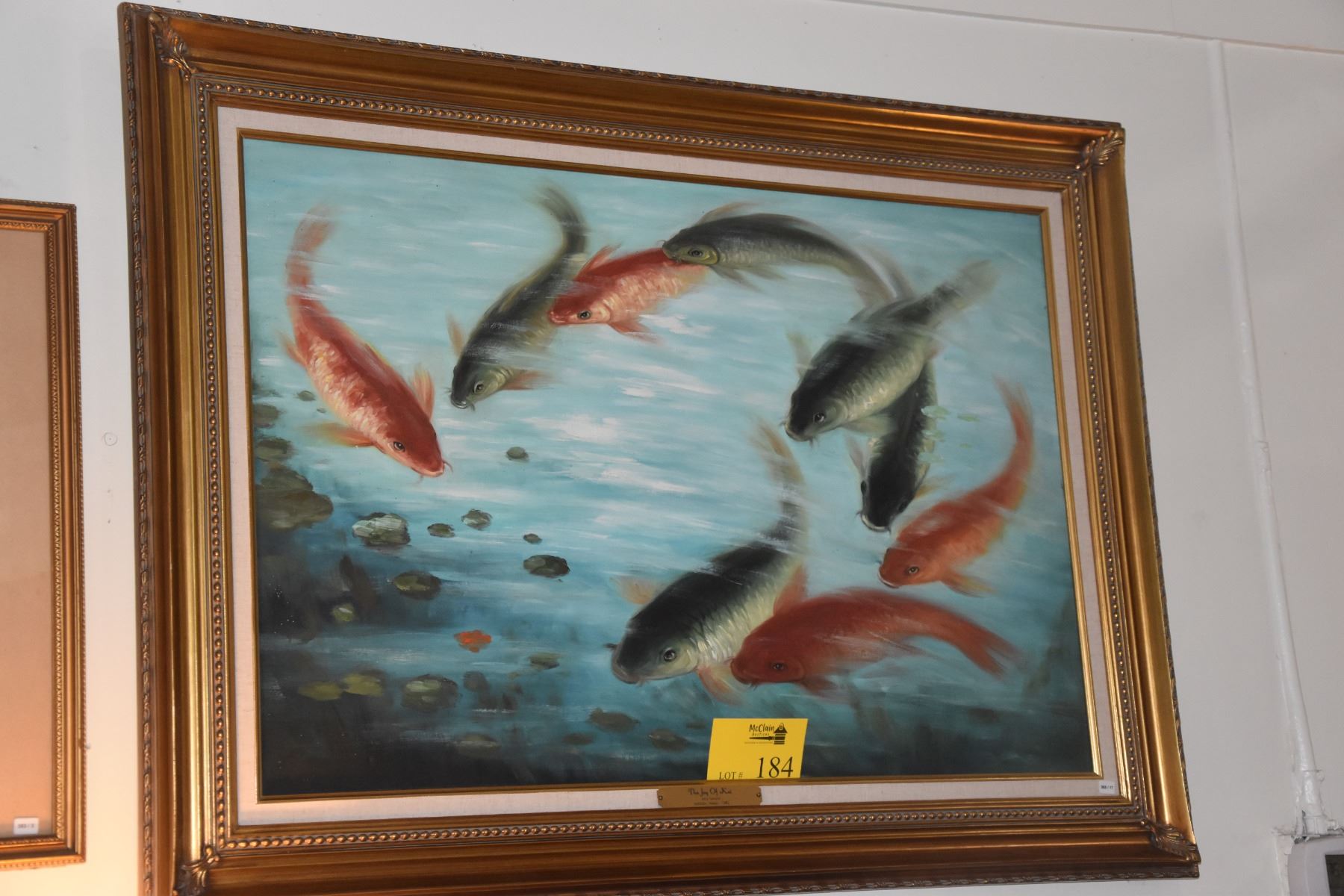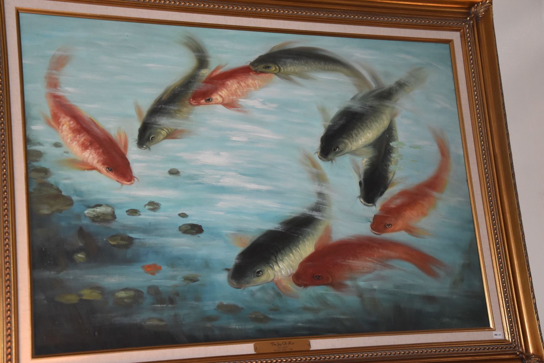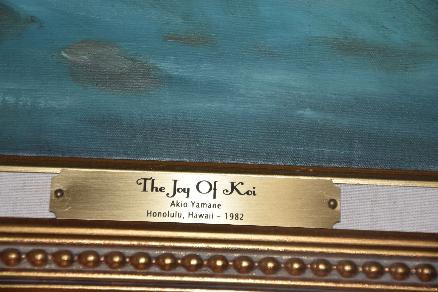 FRAMED OIL ON CANVAS, "THE JOY OF KOI"; AKIO YAMANE 1982 (44" X 38")