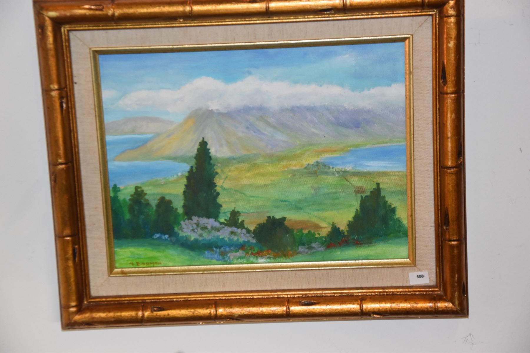 FRAMED OIL ON CANVAS, "VIEW FROM KULA"; SIGNED M. DORMAN (16" X 13")