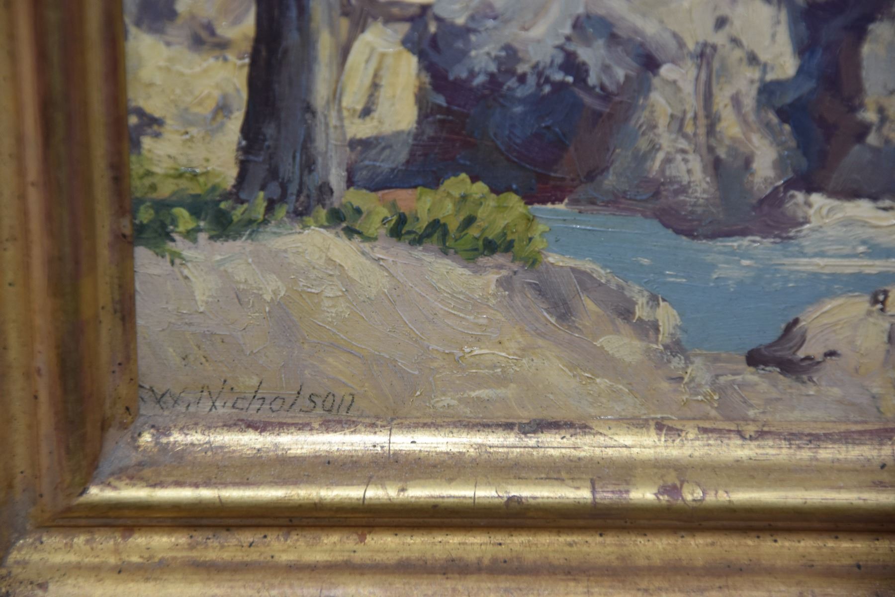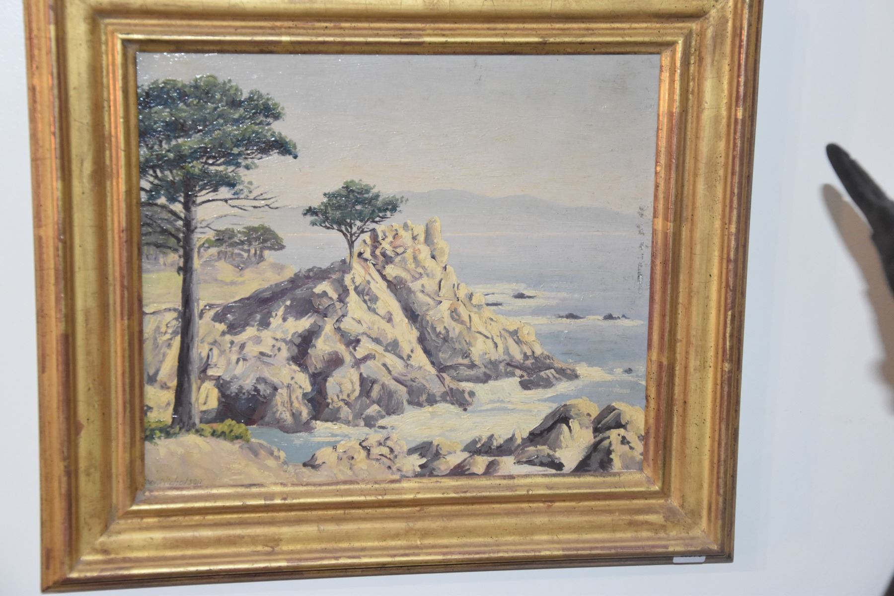 FRAMED OIL PAINTING, "LONE CYPRESS TREE"; BY CHARLES WESLEY NICHOLSON (1886-1965) (15 1/2" X 14")
