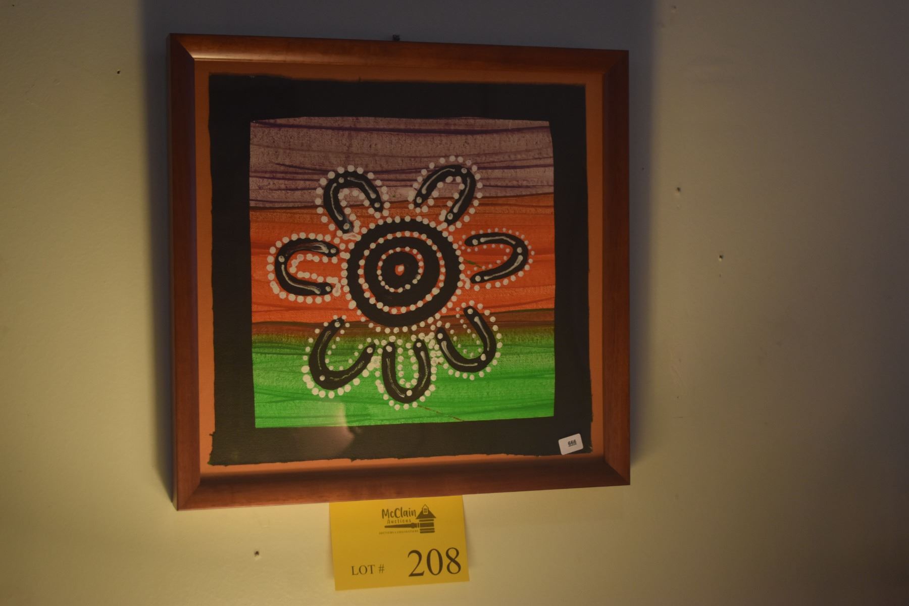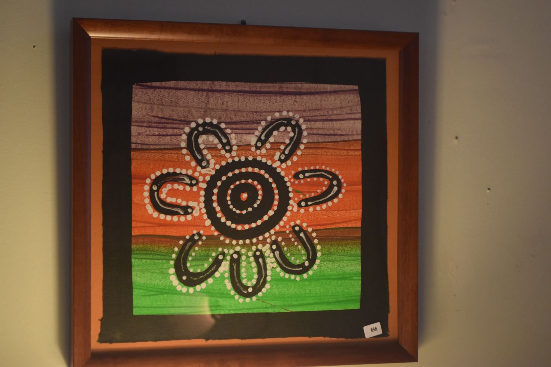FRAMED ORIGINAL ABORIGINAL ART, "SEVEN SISTERS", FROM ULURO, NORTH AUSTRALIA (14" X 13 3/4")