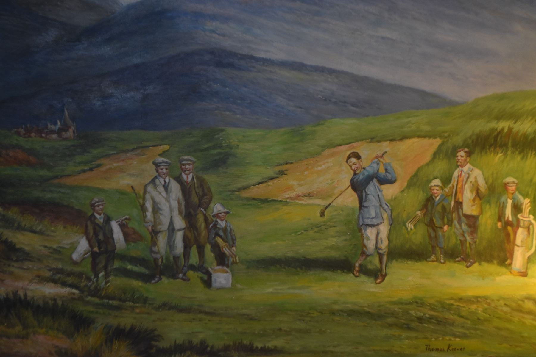 FRAMED ORIGINAL OIL ON CANVAS, GOLF SCENE; SIGNED THOMAS KEEVER (51" X 42")