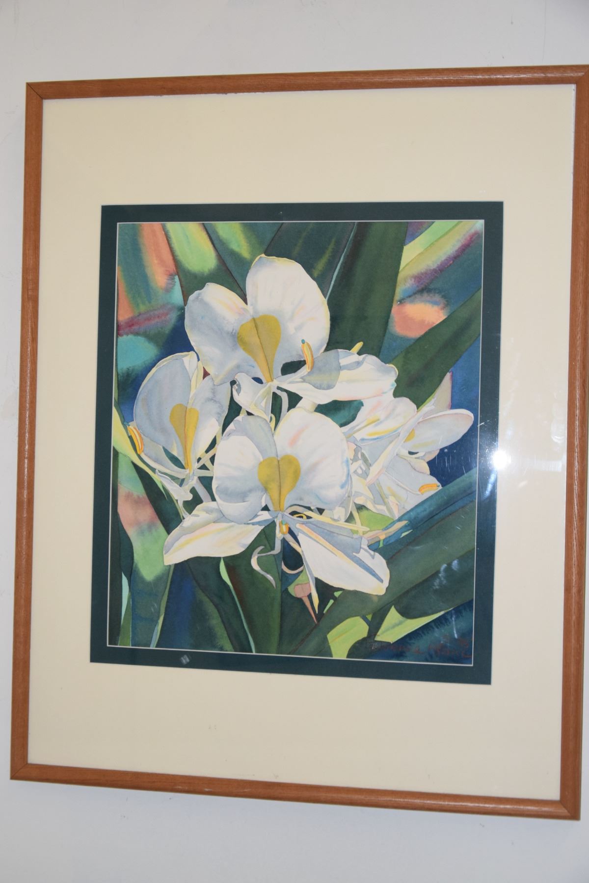 FRAMED ORIGINAL WATERCOLOR, "WHITE GINGER"; SIGNED FABENNE LA BLANC, '95
