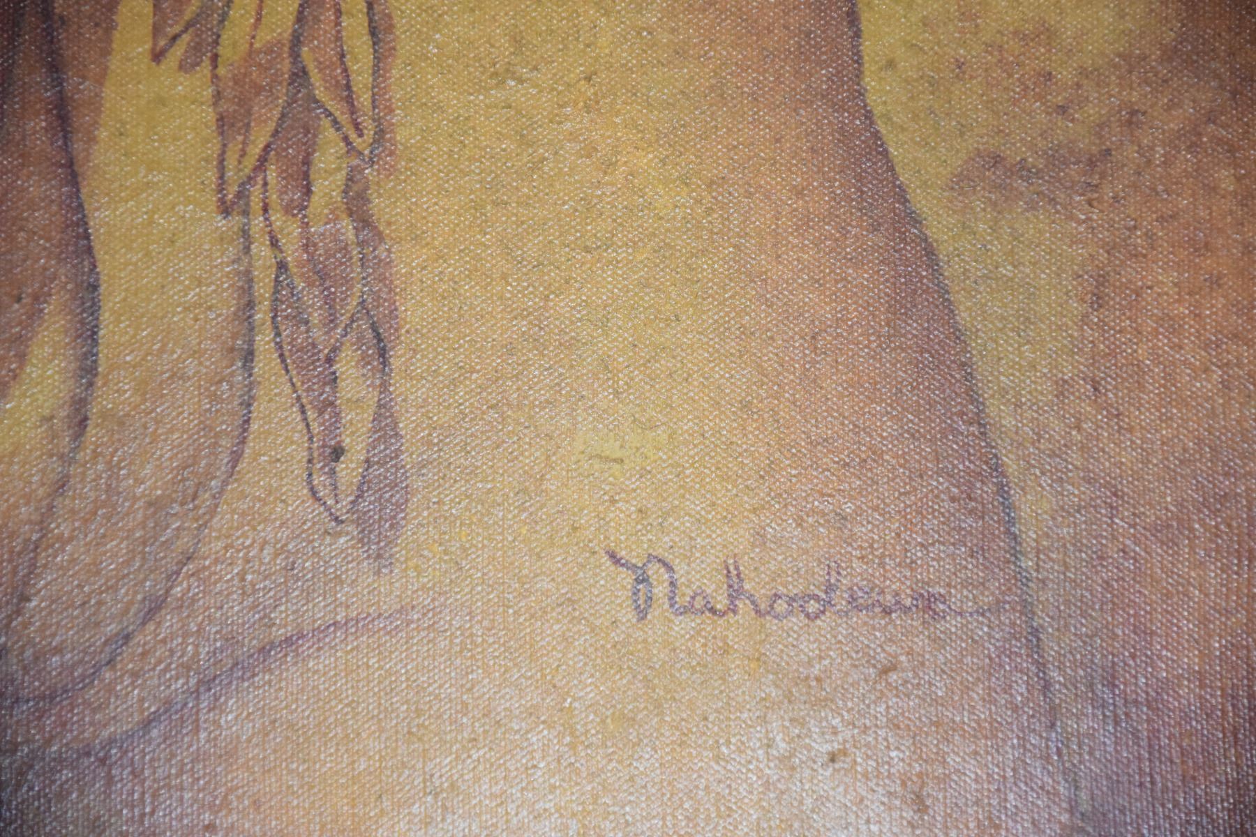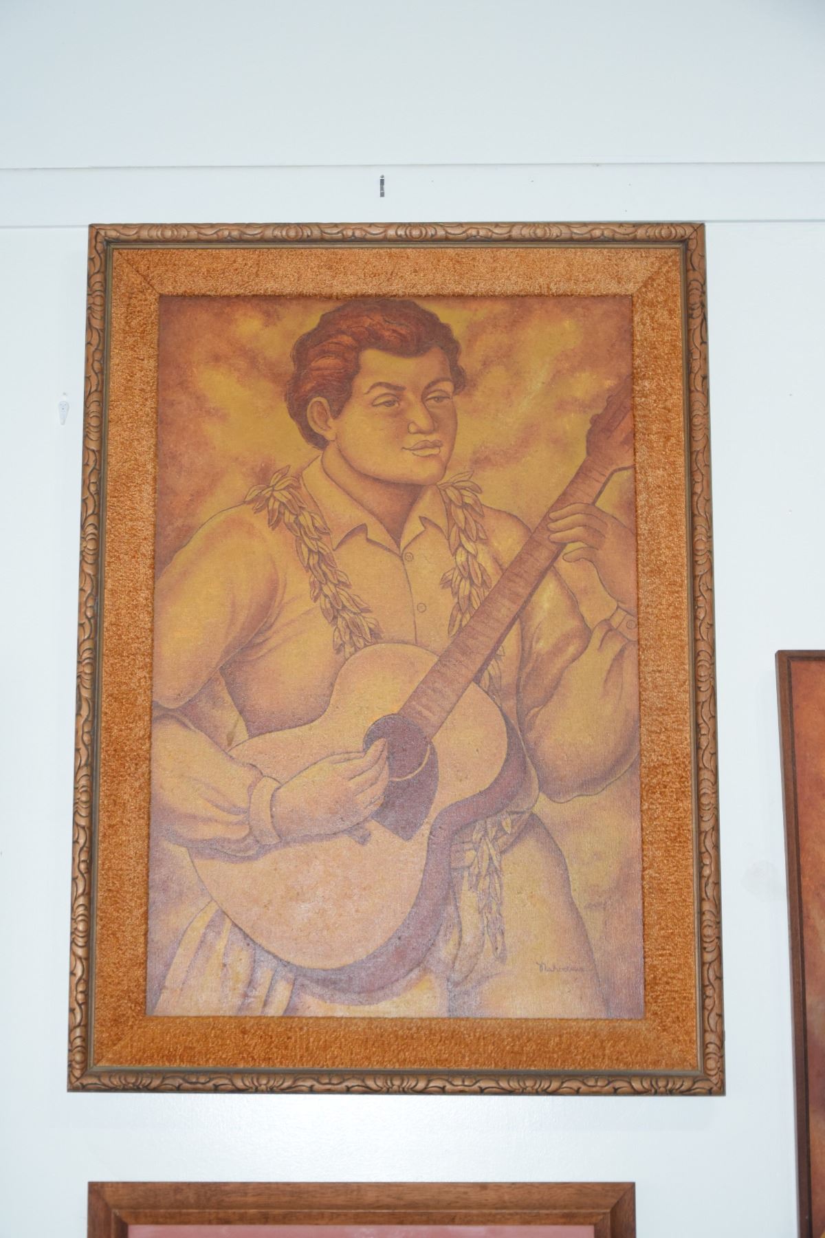 FRAMED PAINTING, "HAWAIIAN MAN PLAYING GUITAR"; SIGNED NAHOOLEWA