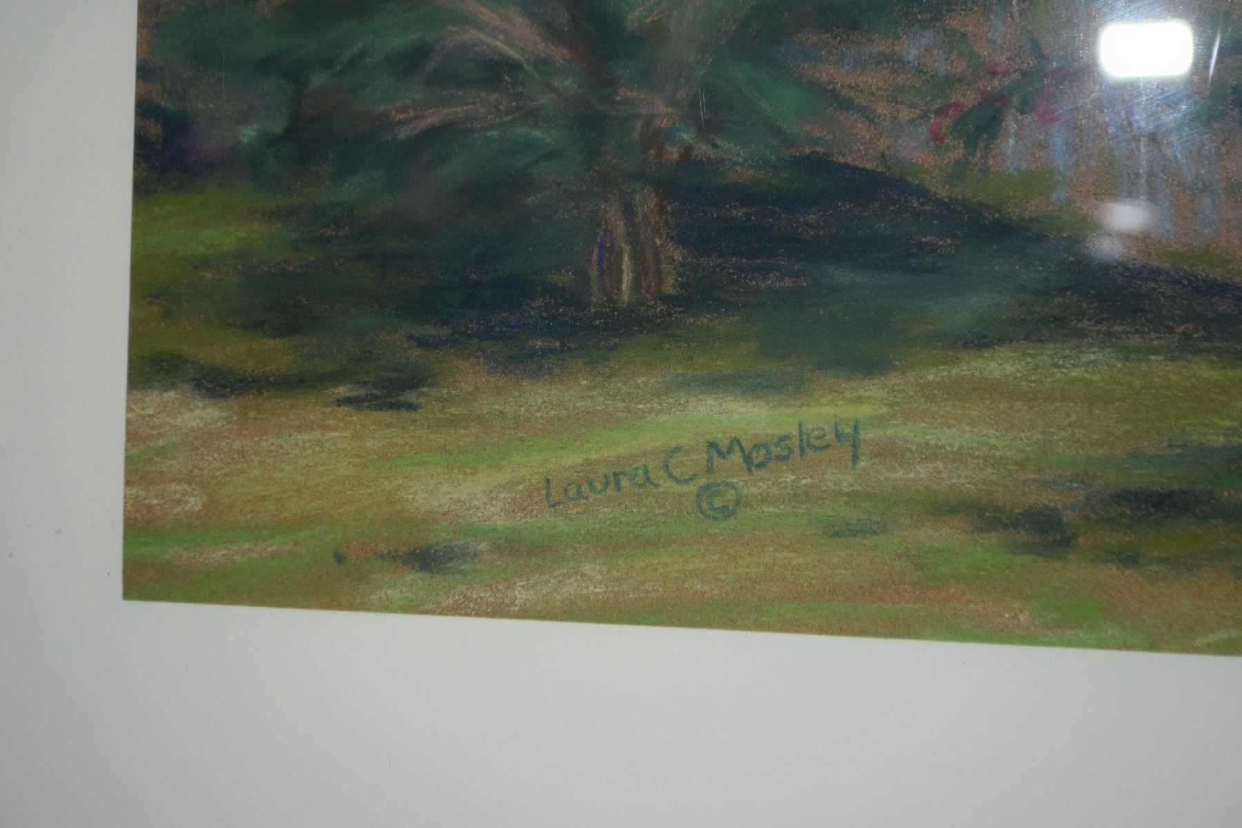 FRAMED PASTEL DRAWING, "COTTAGE GARDEN"; SIGNED LAURA MOSLEY (28" X 23 2/4")