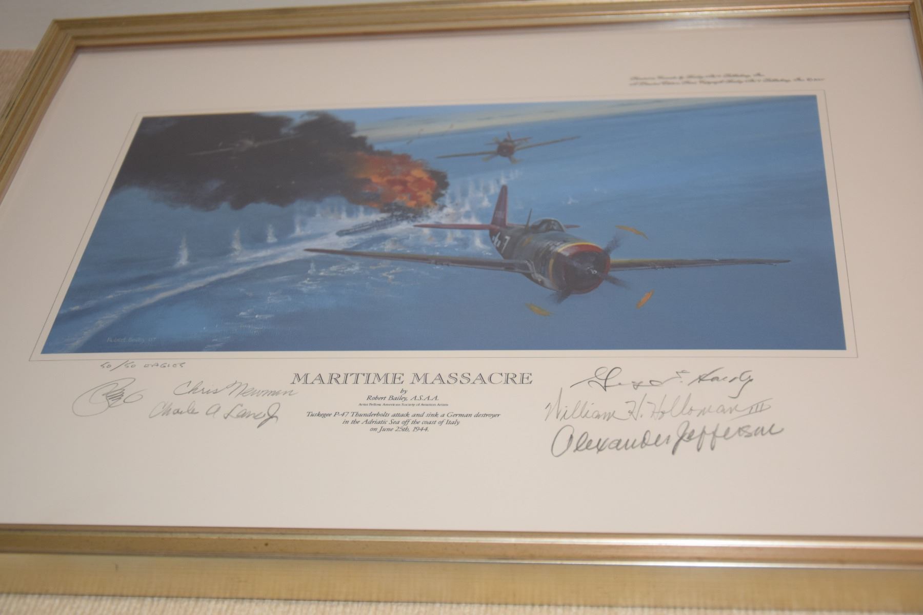 FRAMED PHOTO: MARITIME MASSACRE-AUTOGRAPHED, MIDWAY, COMMEMORATIVE PLATES (4 PCS)