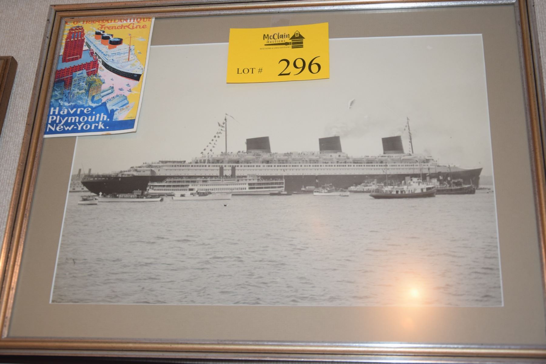 FRAMED PHOTO SS NORMANDIE & POSTCARD (20" X 16")