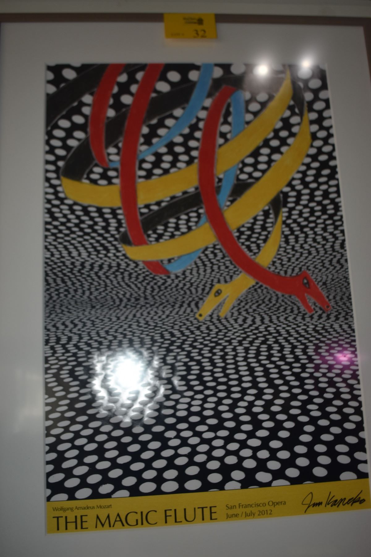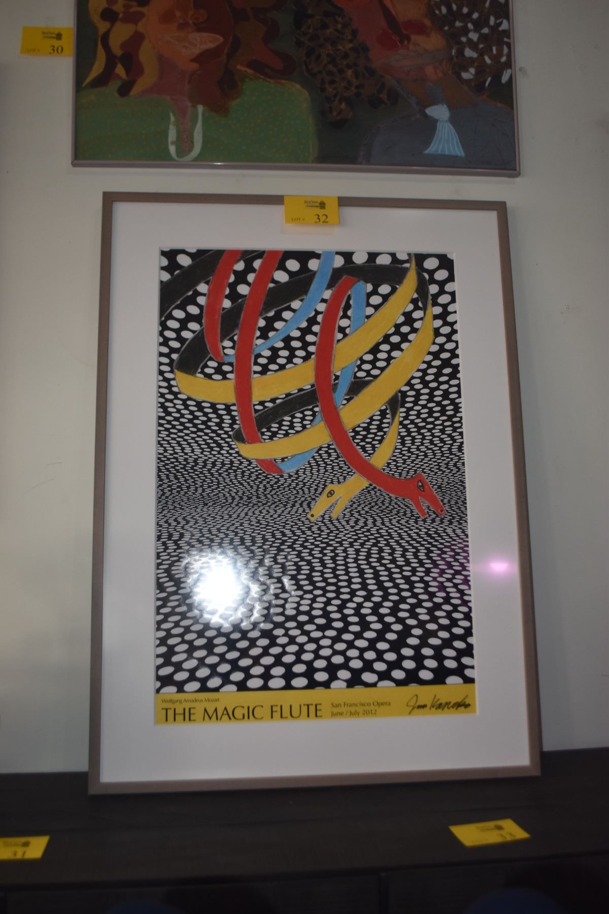 FRAMED POSTER FOR WOLFGANG AMADEUS MOZART'S OPERA, "THE MAGIC FLUTE" (32" X 44 1/4")