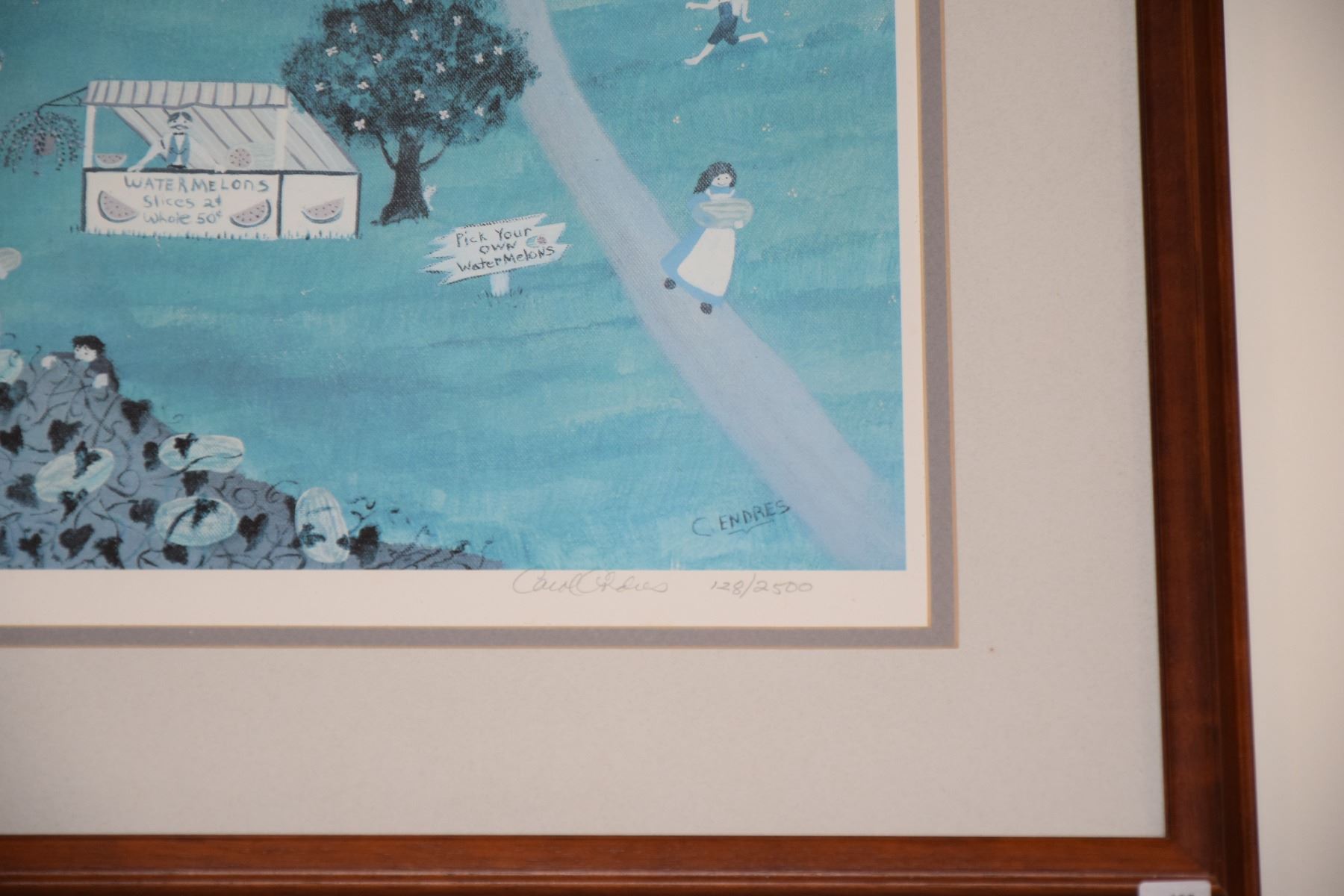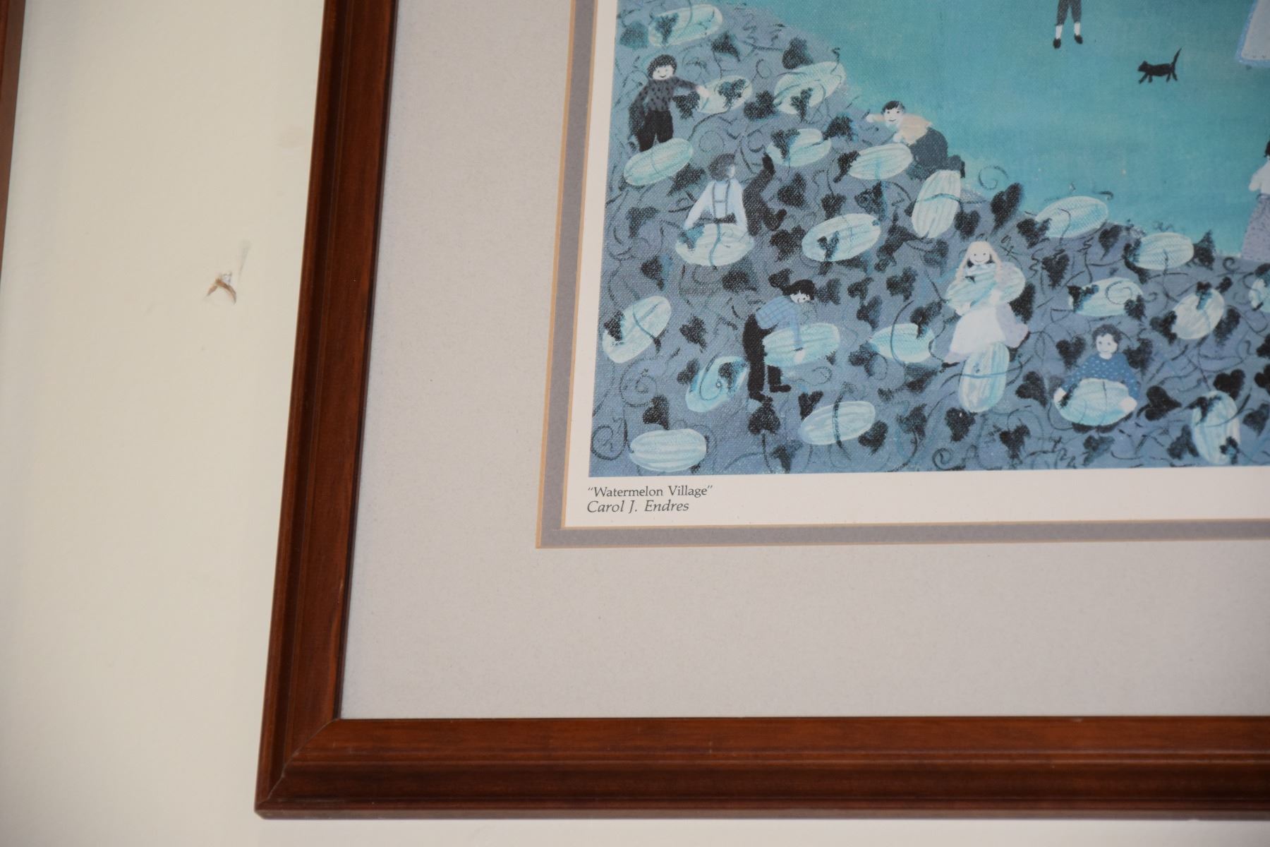 FRAMED POSTER, "WATERMELON VILLAGE"; CAROL J. ENDRES