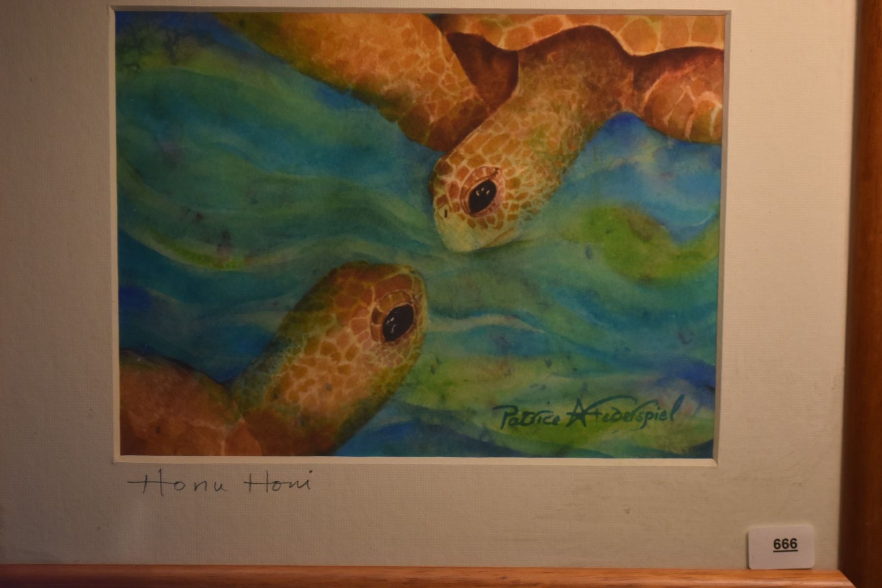 FRAMED PRINT, "HONU HONI"; BY PATRICE ATEDERSPIEL (11 3/4" X 9 1/2") (DOES NOT INCLUDE STAND)