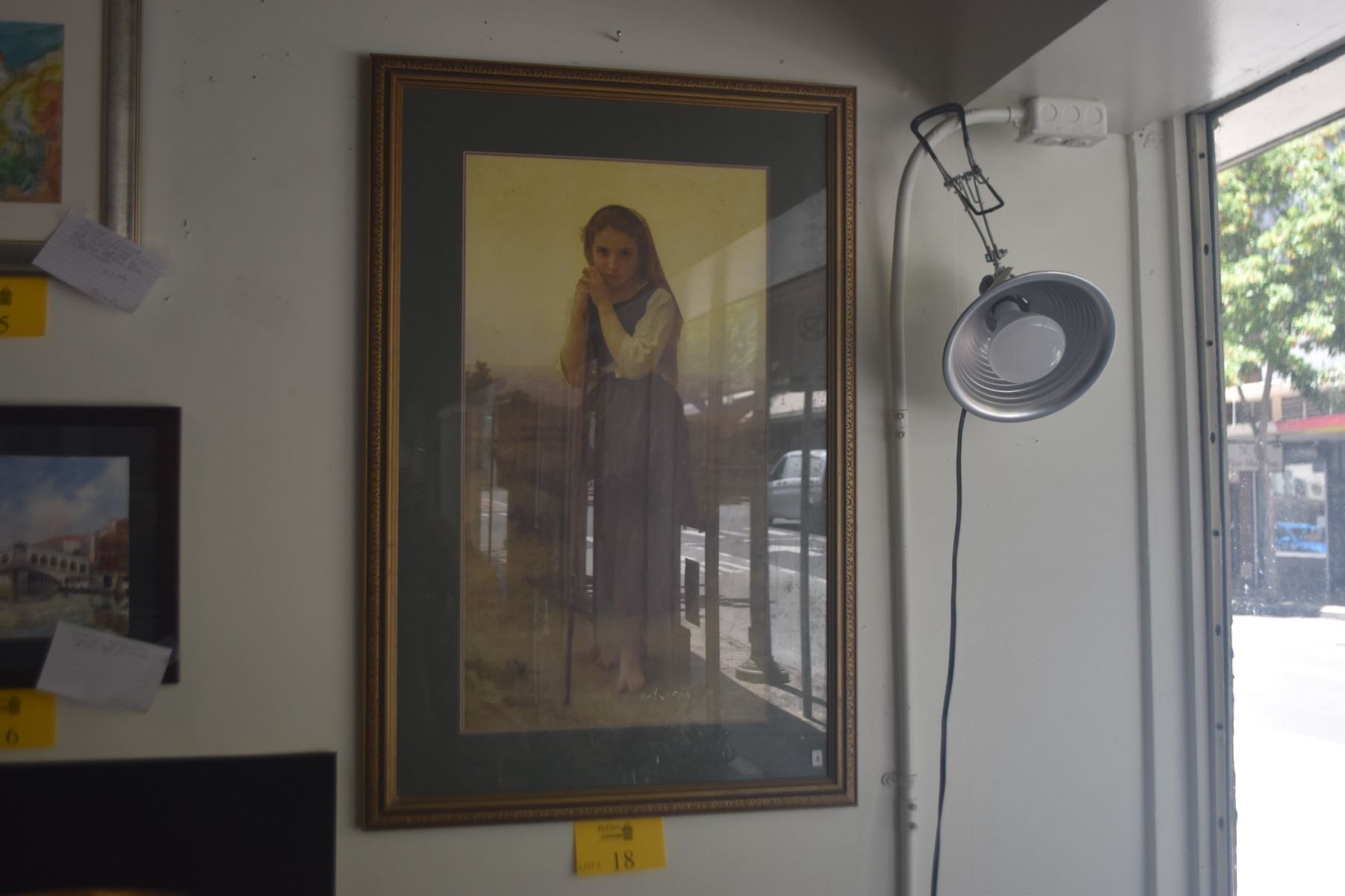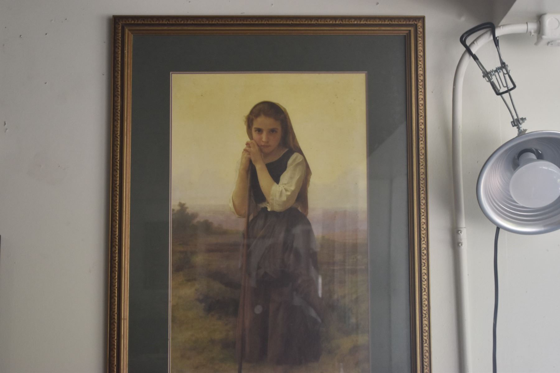 FRAMED PRINT OF THE PAINTING THE LITTLE SHEPHERDESS, W. ADOLPHE BOUGUEREAU (ORIGINALLY PAINTED IN 1891)