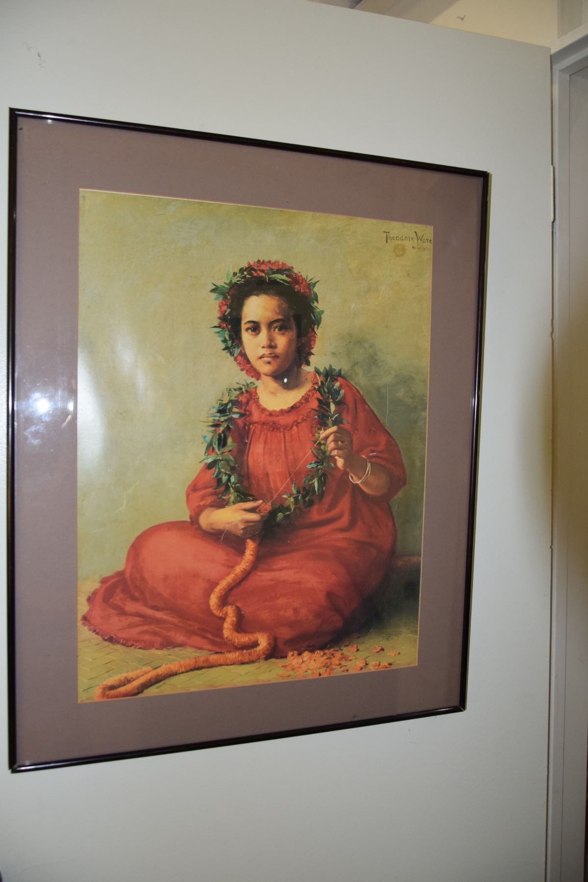 FRAMED PRINT, "THE LEI MAKER"; THEODORE WORE