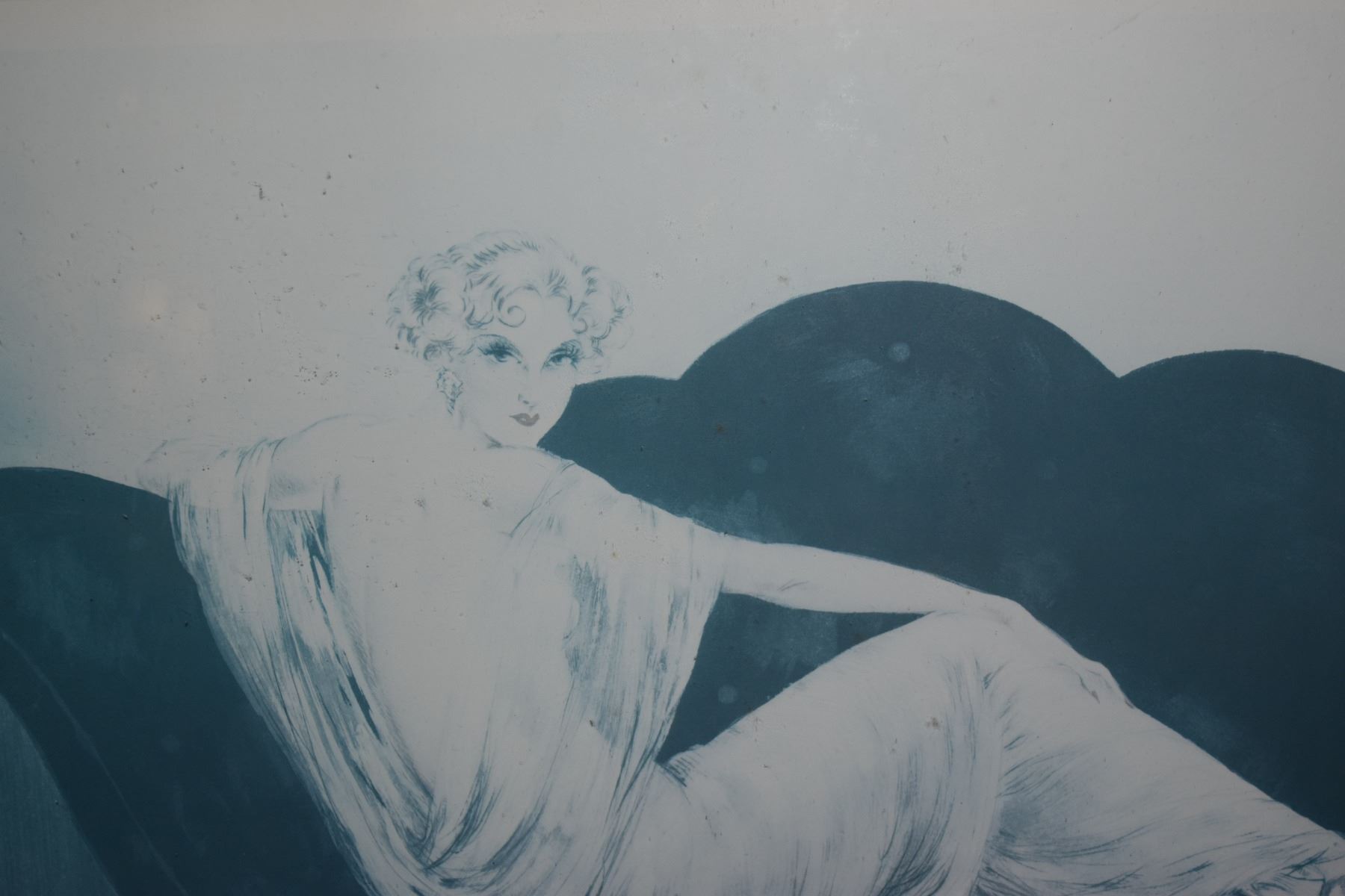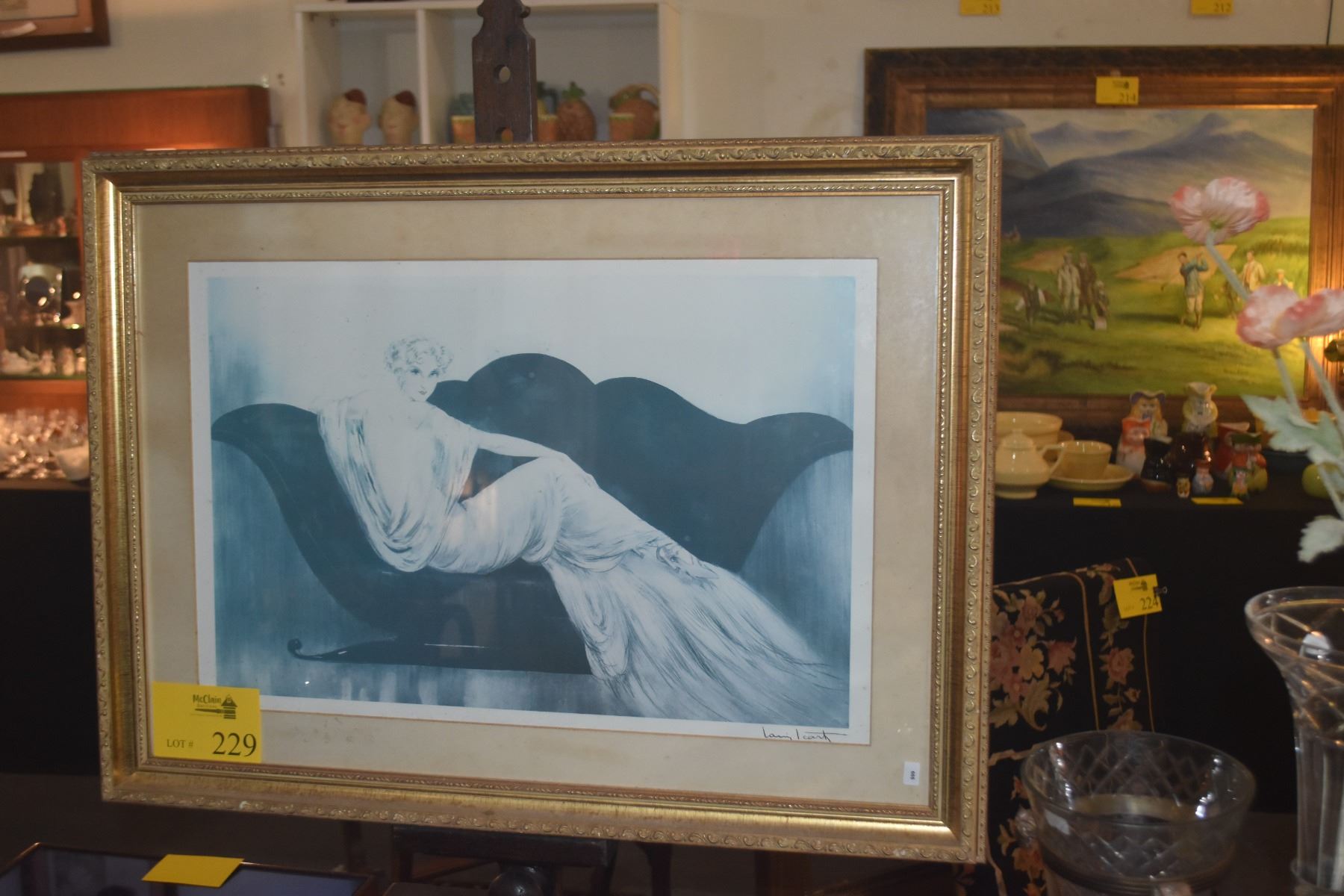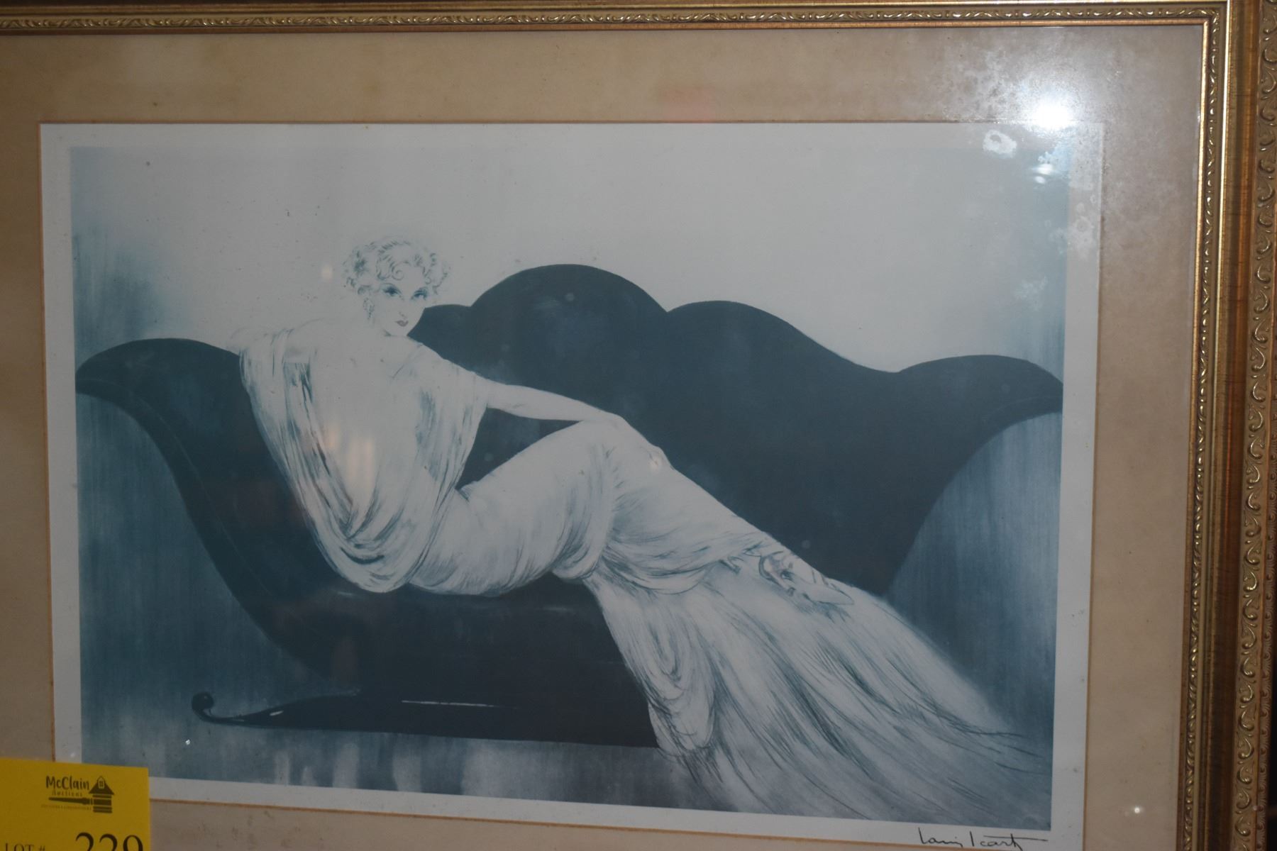 FRAMED PRINT TITLED "LE SOFA" BY FRENCH ART DECO ARTIST LOUIS ICART (30 1/2" X 22 1/2")