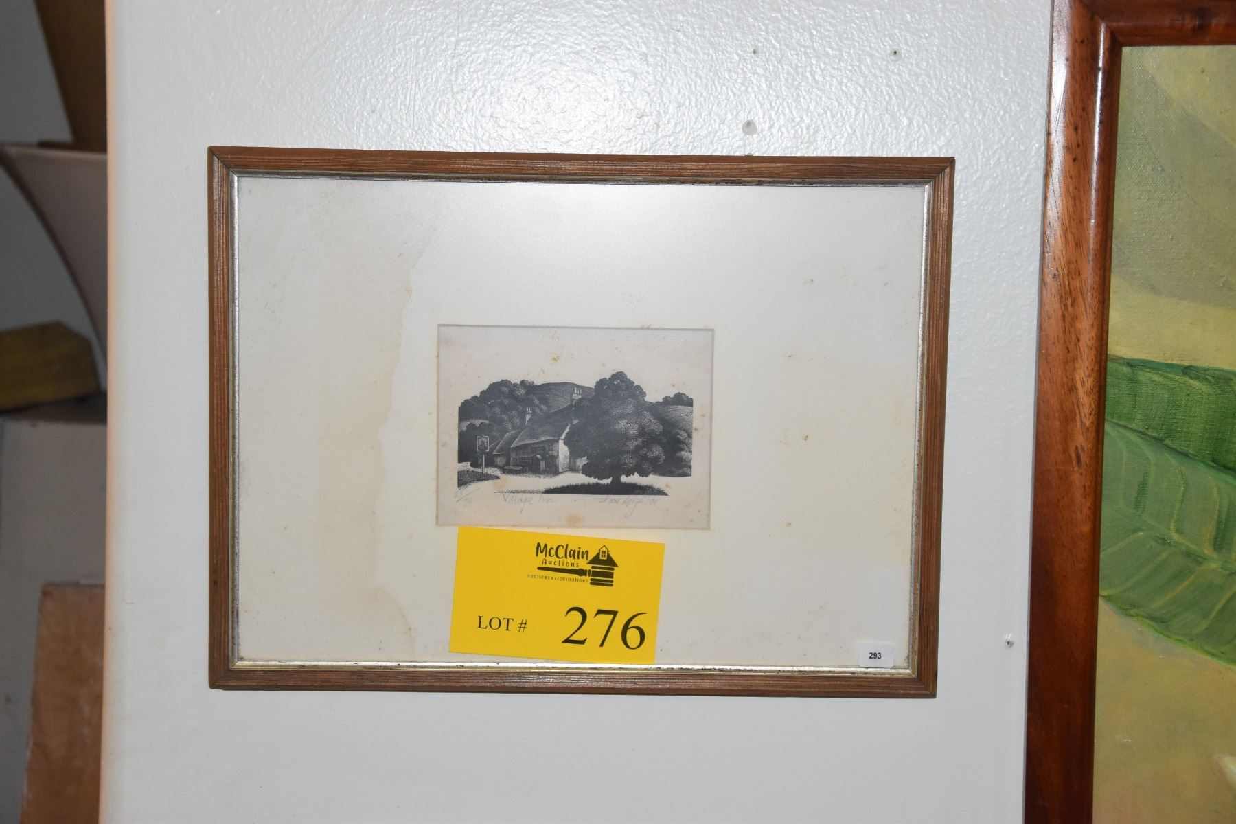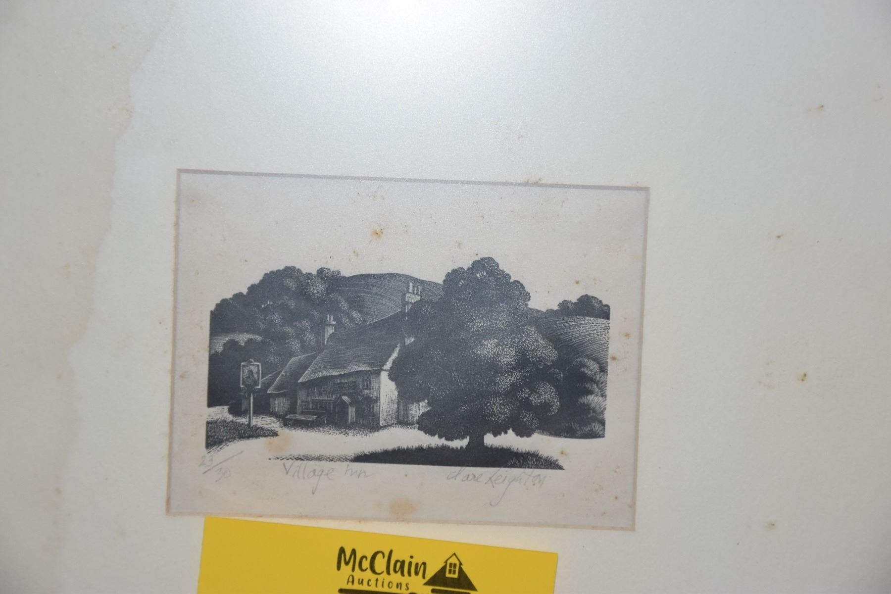 FRAMED PRINT, "VILLAGE INN"; SIGNED CLAIRE LEIGHTON 23/50 (15" X 11")