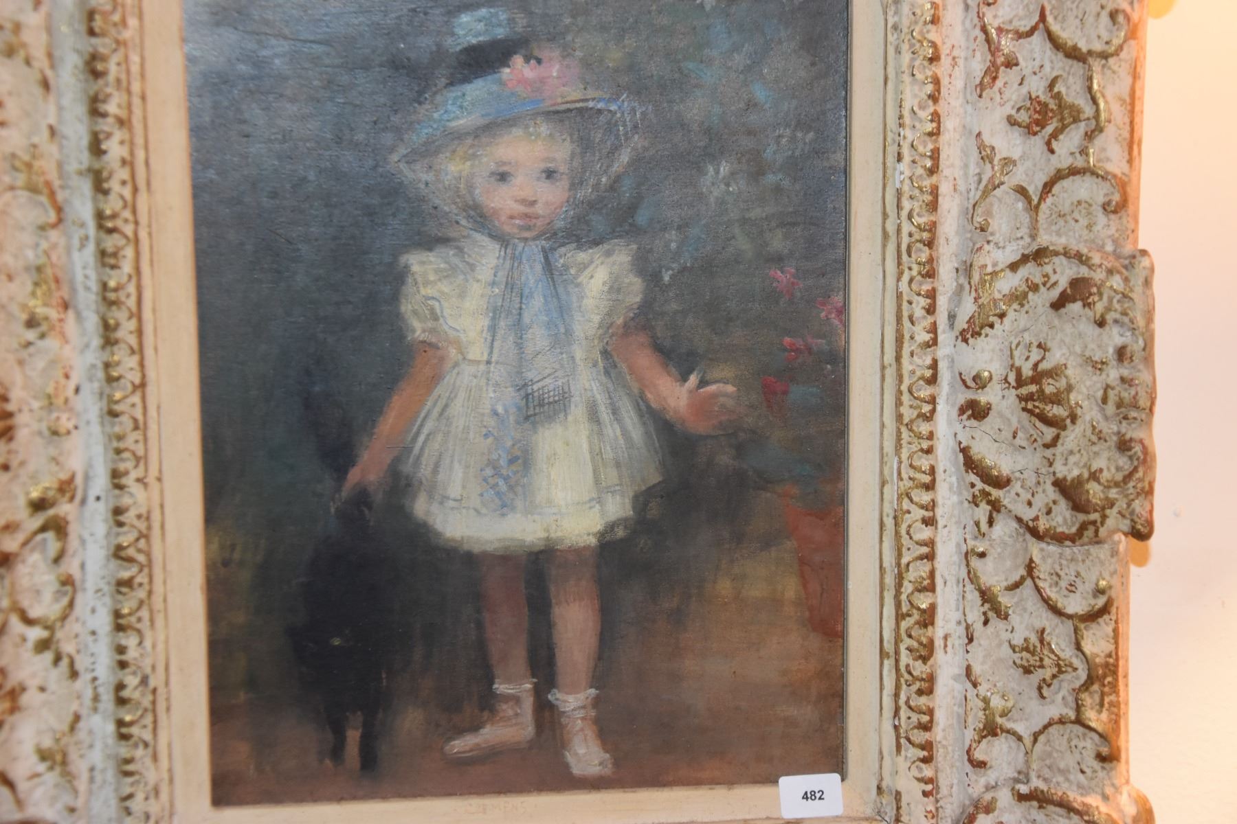 FRAMED PRINTING, LITTLE GIRL W/CAT (HOMAGE TO RENIOR) BY PAUL CLEMENS (14 1/2" X 16 1/2")