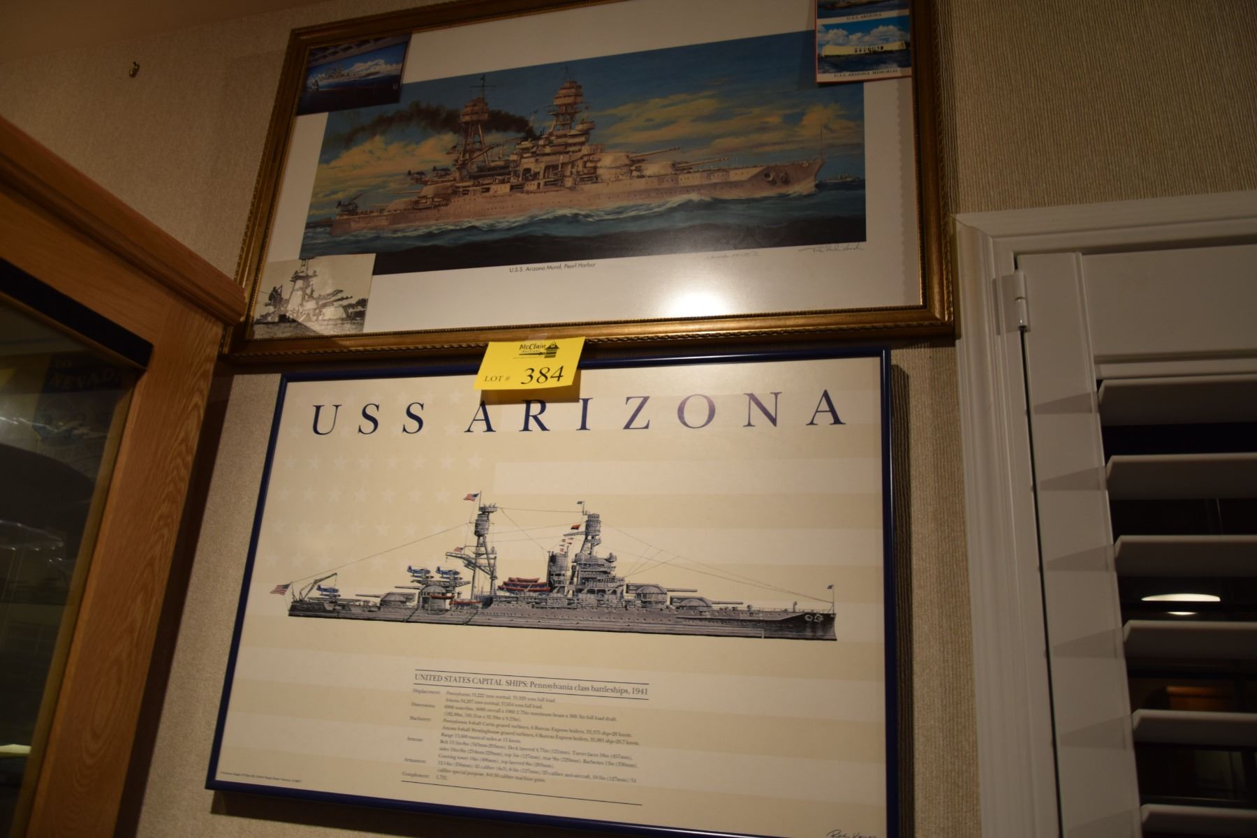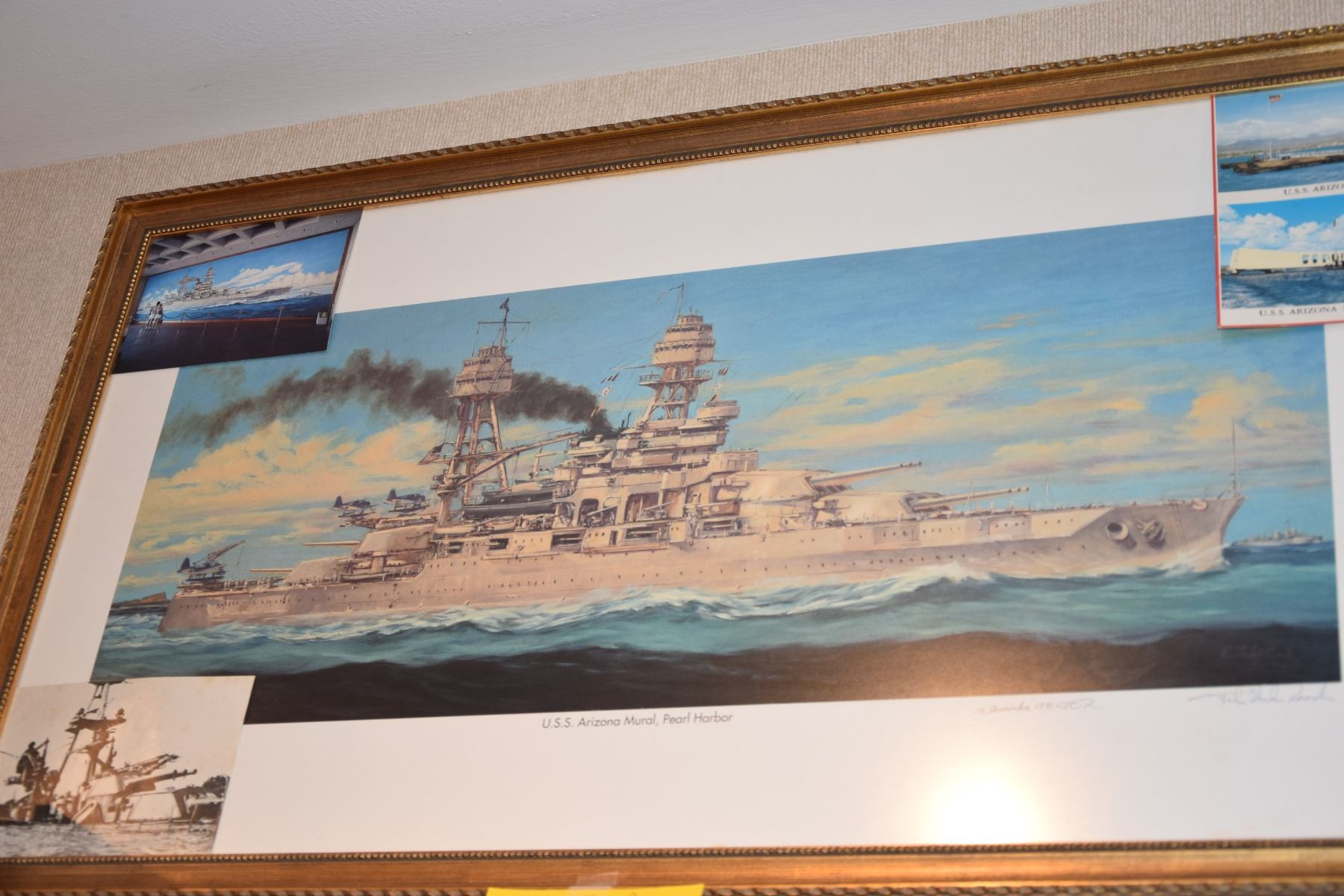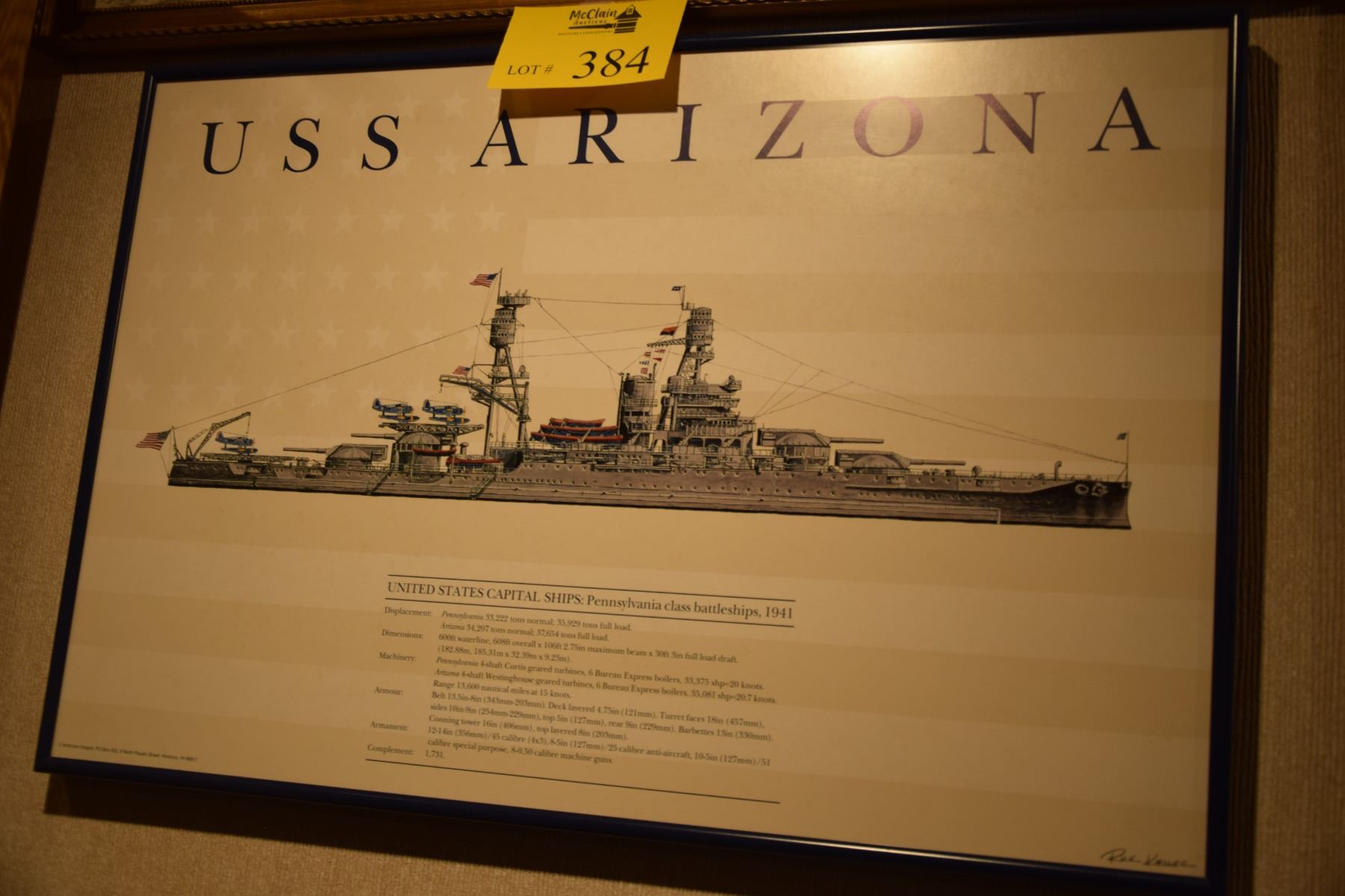 FRAMED PRINTS, USS ARIZONA; SIGNED (2 PCS)