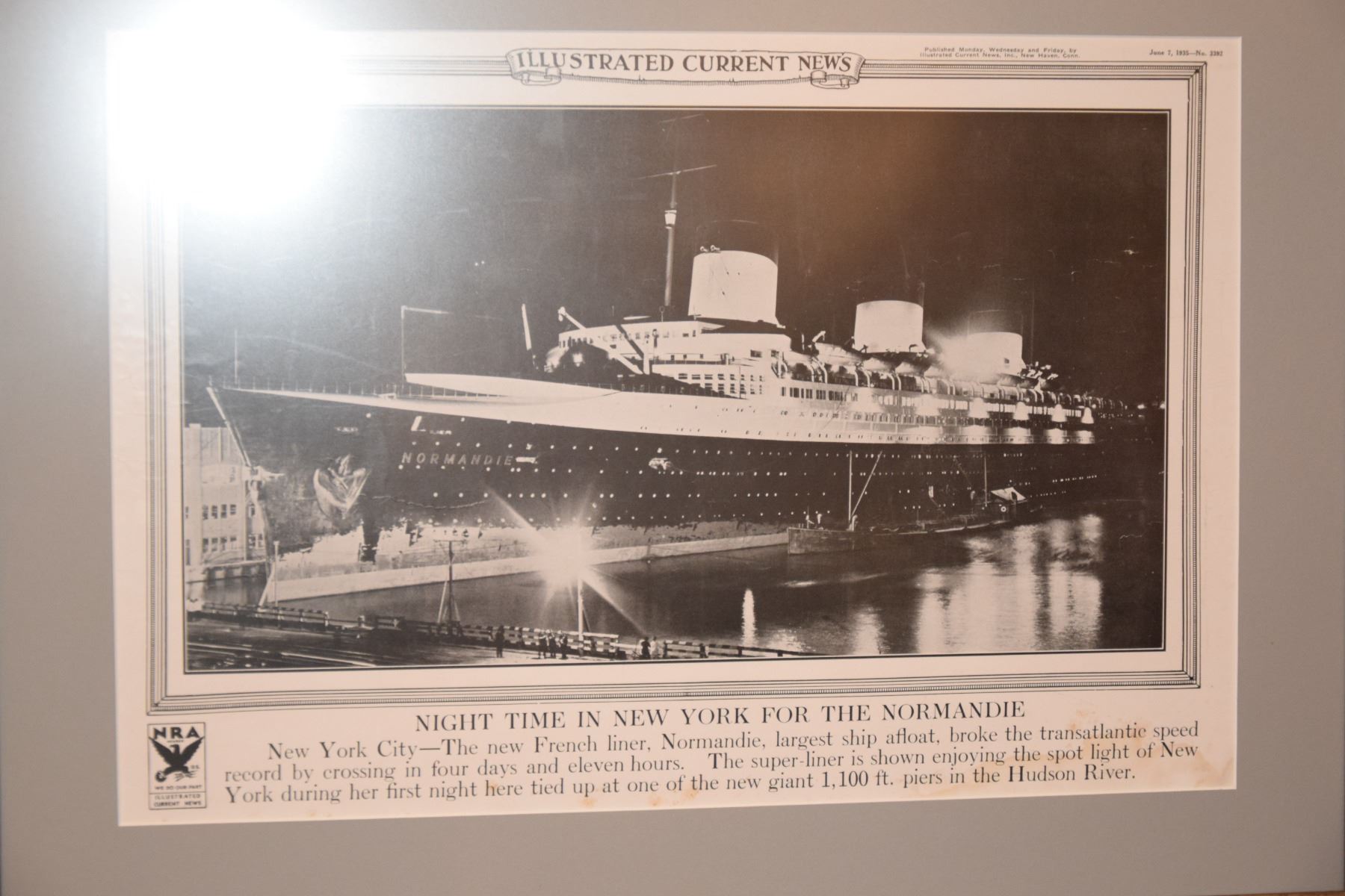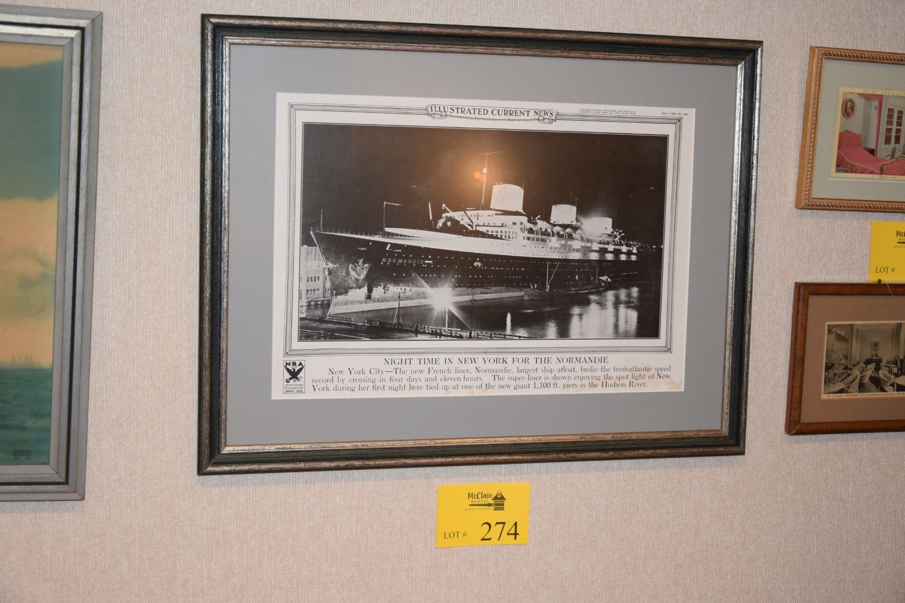 FRAMED REPRODUCTION PRINT FROM ILLUSTRATED CURRENT NEWS, 6/9/1935 #3392, "NIGHT TIME IN NEW YORK FOR THE MORMANDIE" (24" X 18")