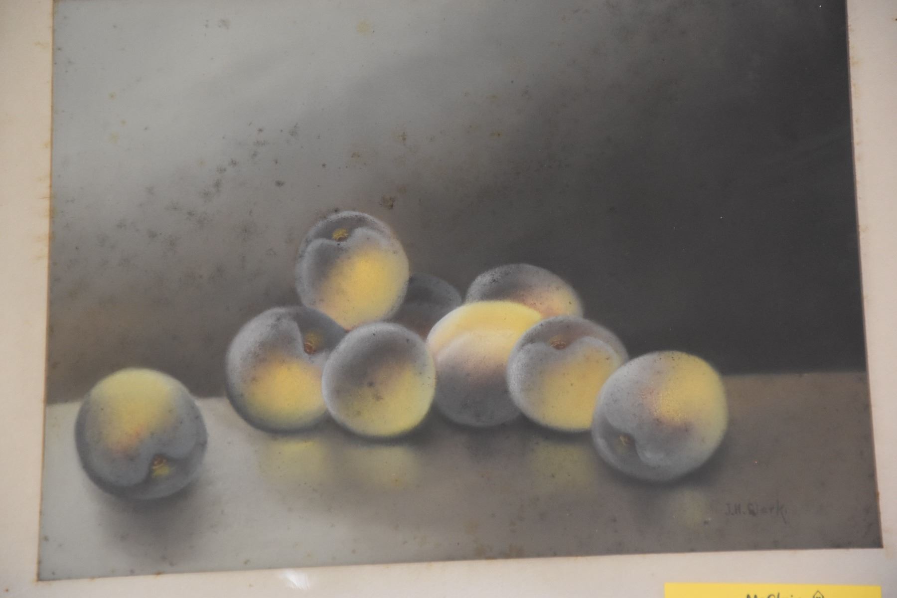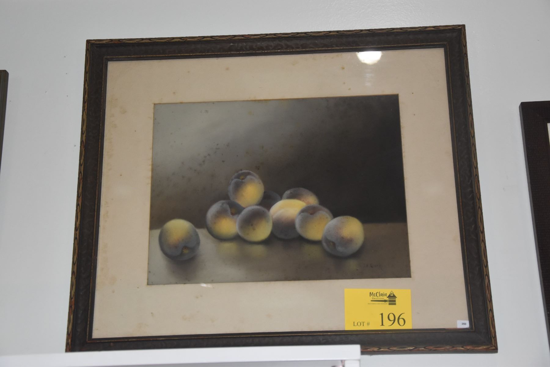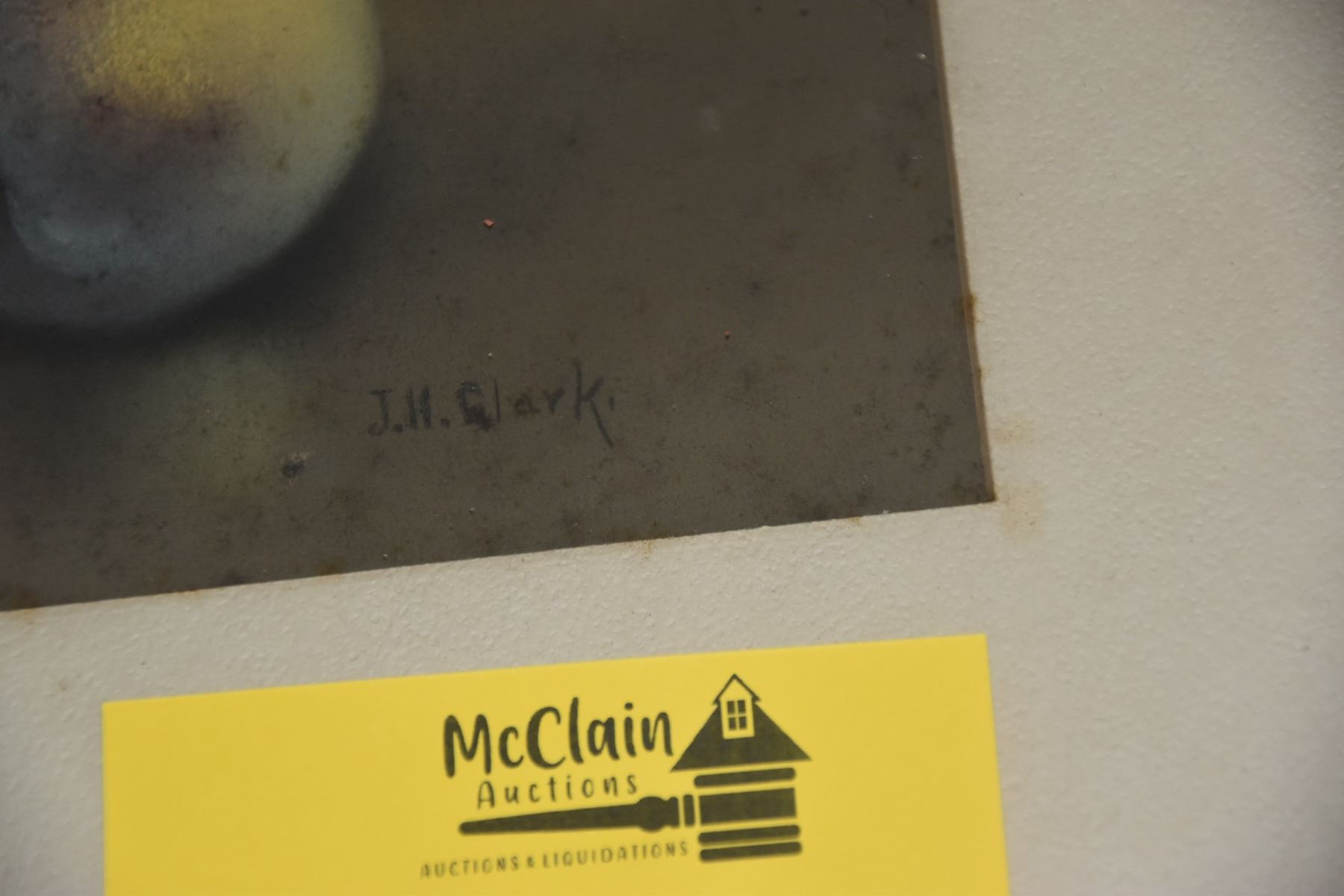 FRAMED STILL LIFE PAINTING, PEACHES; SIGNED J.H. CLARK (26 1/2" X 22")