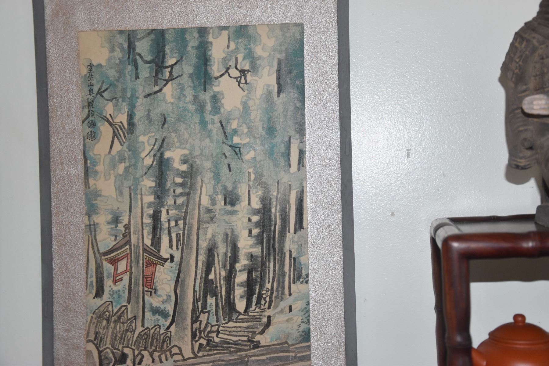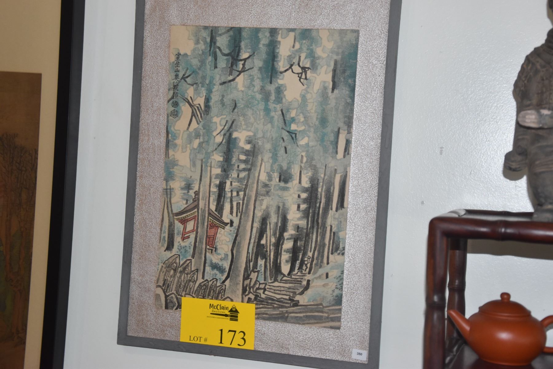 FRAMED VINTAGE JAPANESE WOODBLOCK PRINT; SIGNED (14 1/2" X 19 3/4")