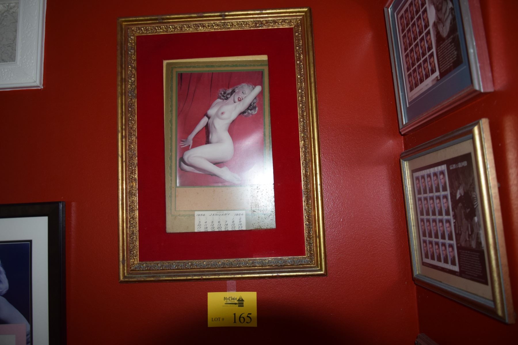 FRAMED VINTAGE MARILYN MONROE PHOTO, JANUARY, 1954 CALENDAR PAGE (17 1/4 " X 23")