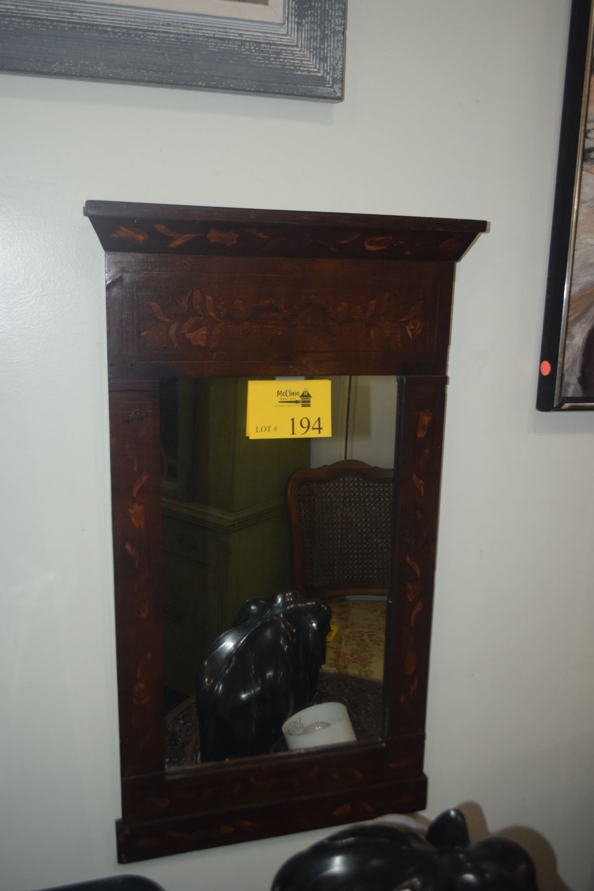 FRAMED WALL MIRROR W/MARQUETRY INLAY (18 1/4" X 32")