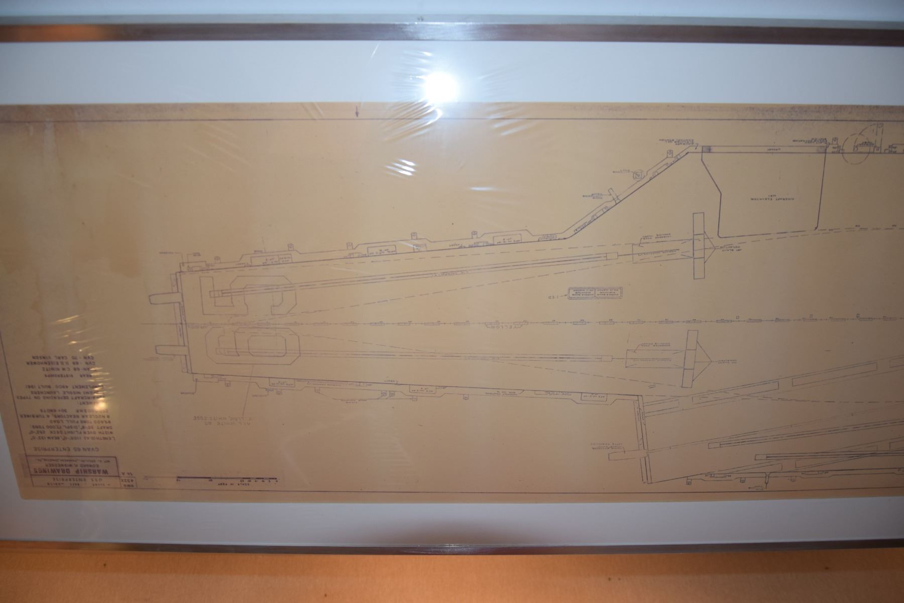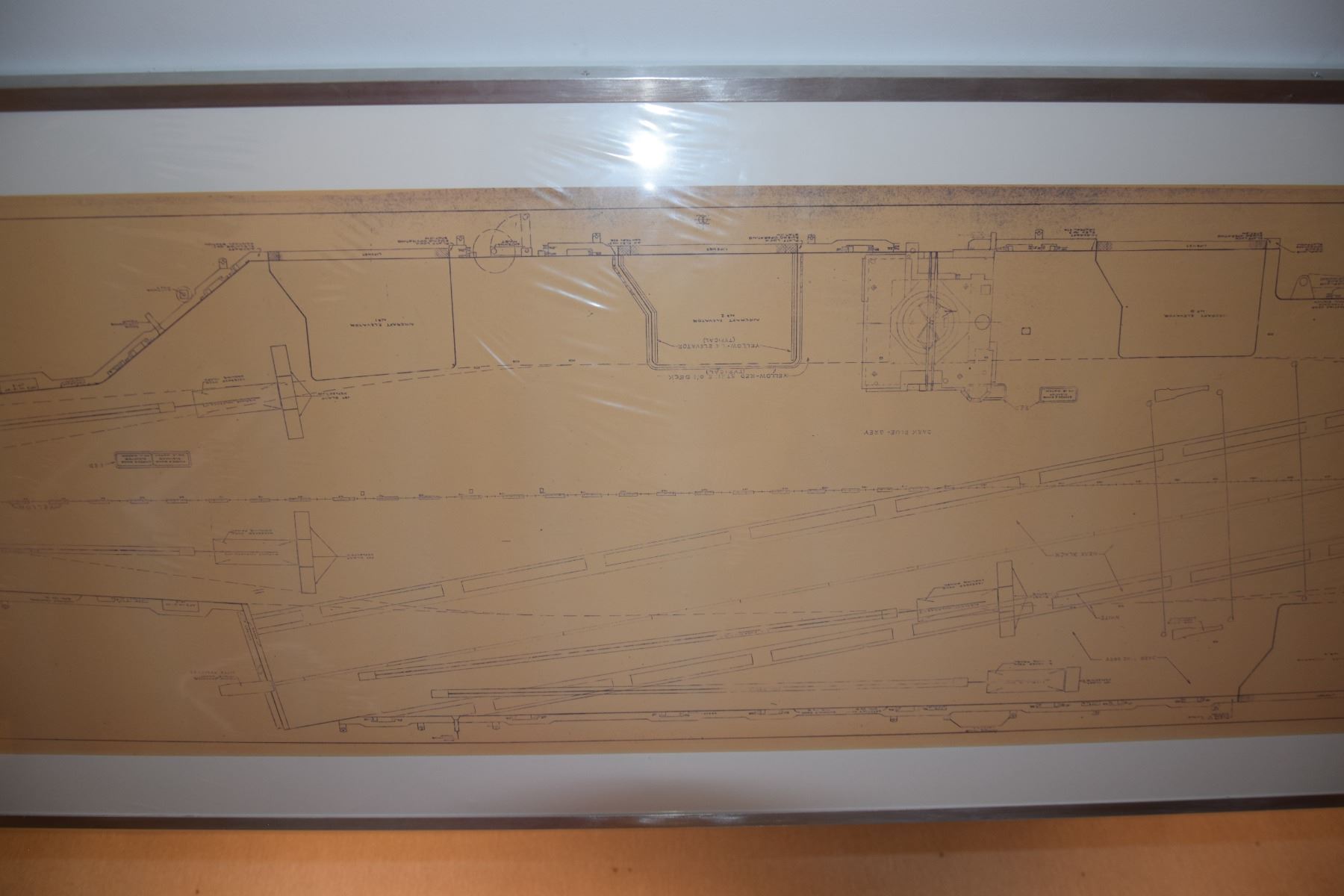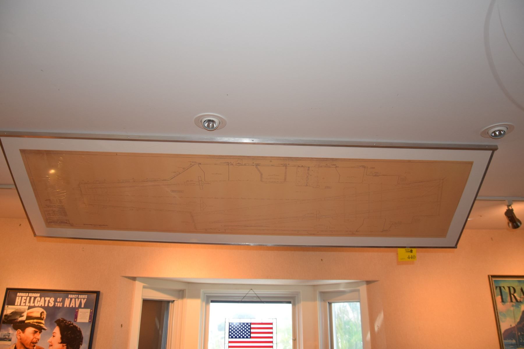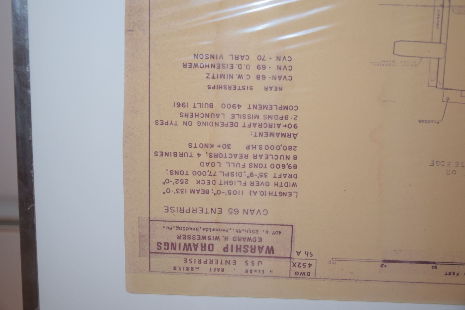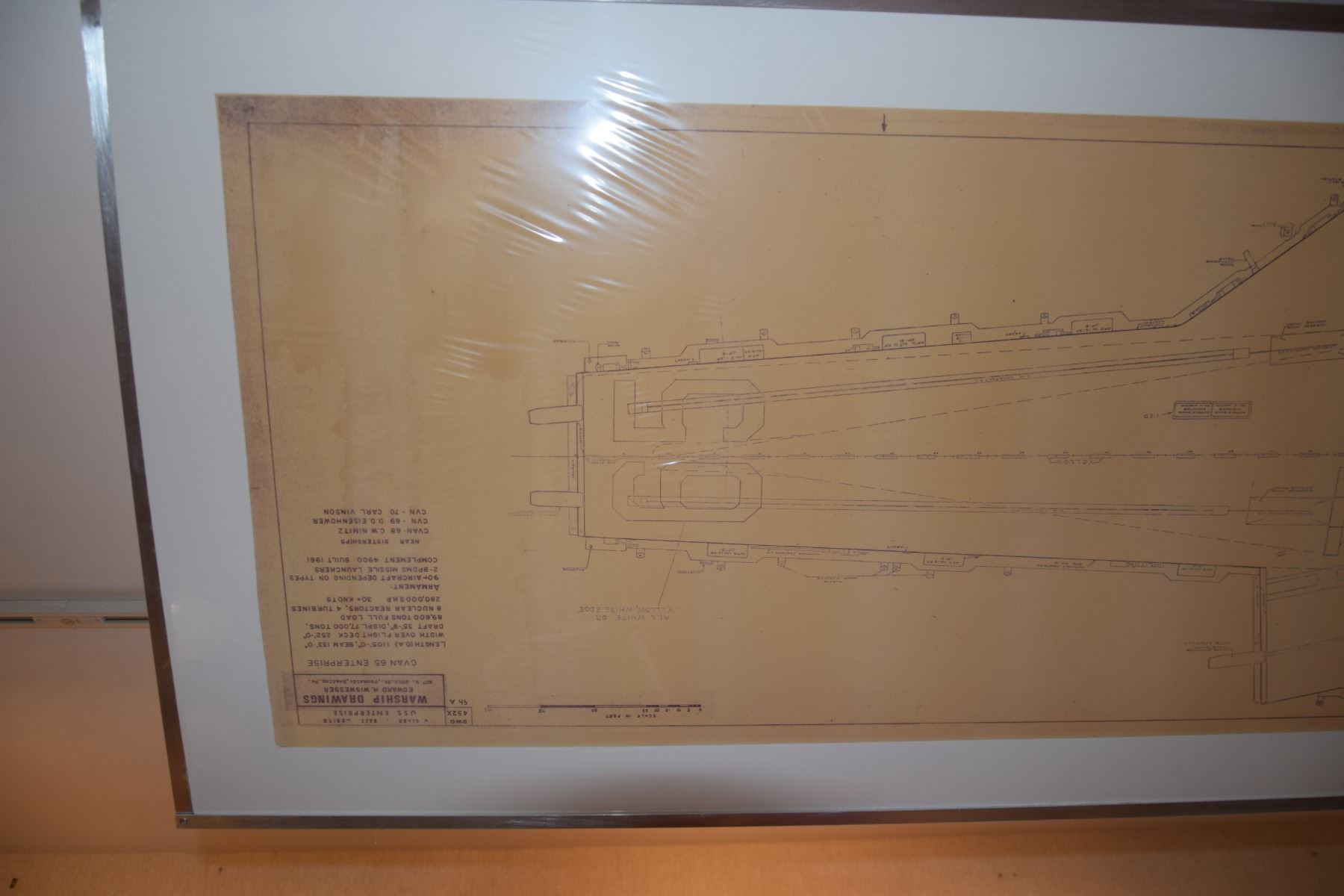 FRAMED WARSHIP DRAWING, CVAN 65 ENTERPRISE (SHOWING TOP VIEW OF DECK)