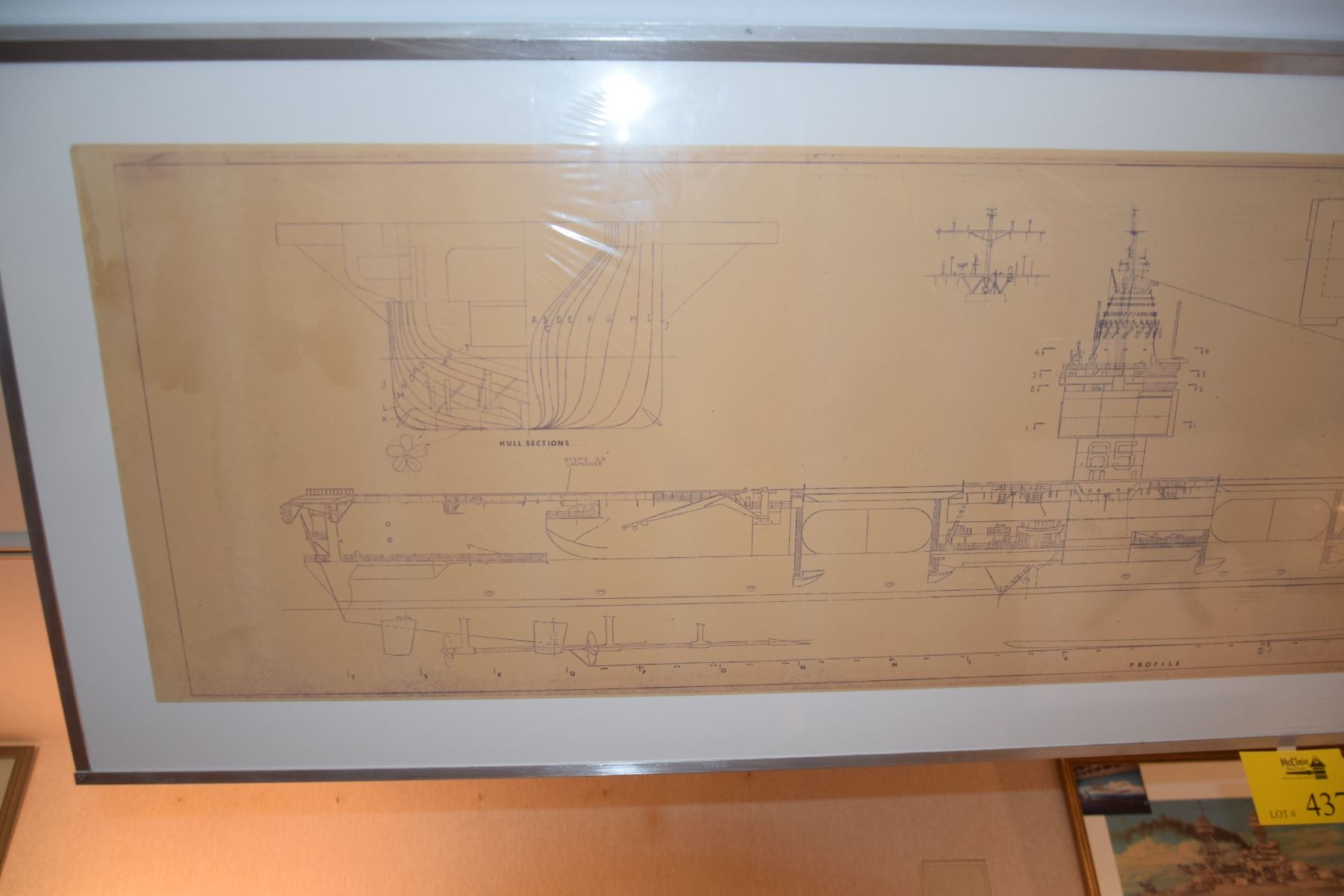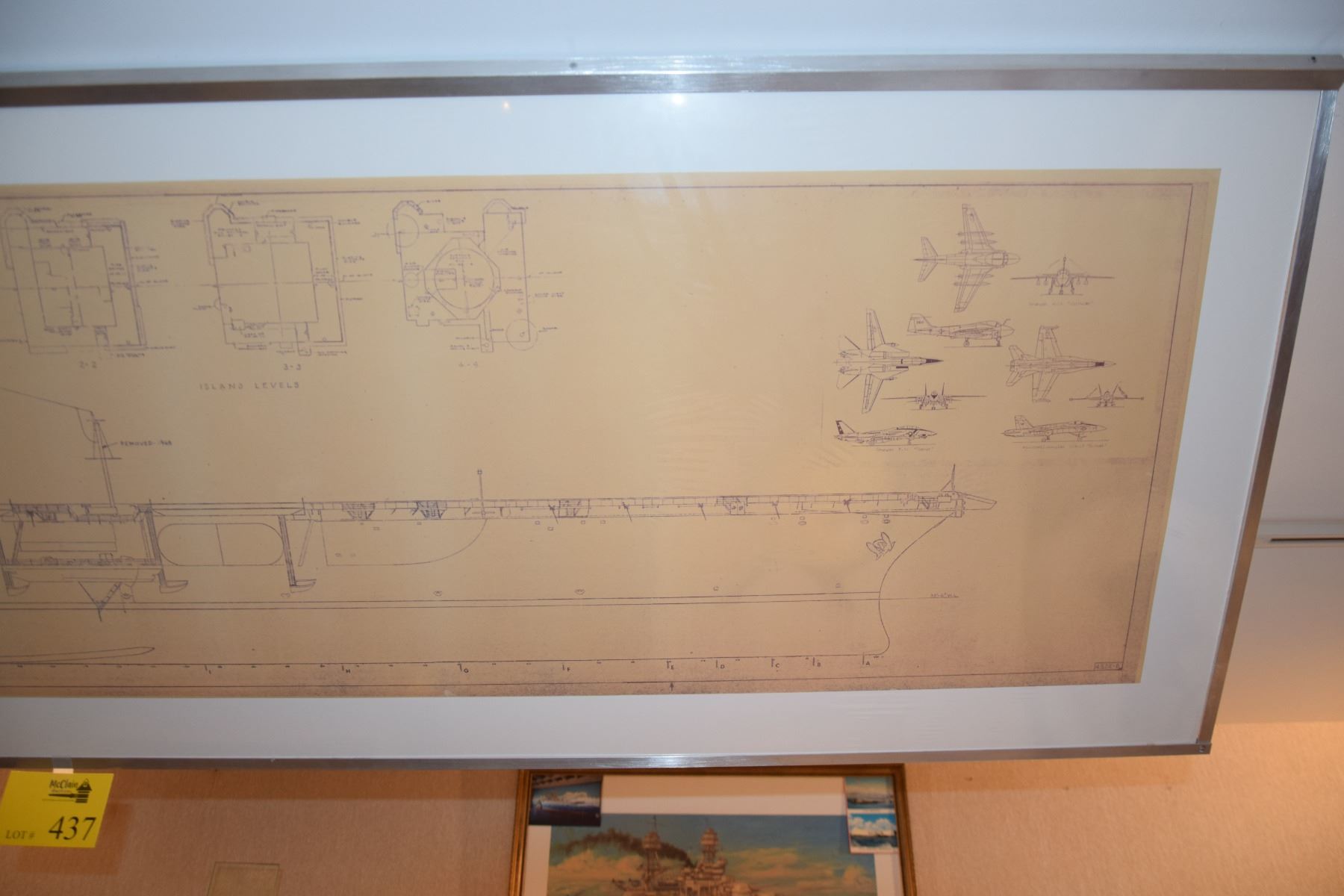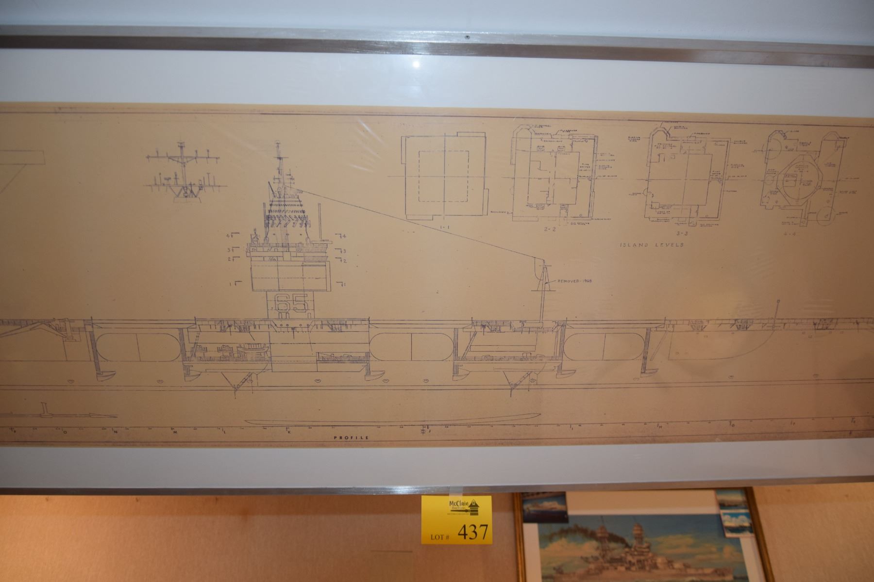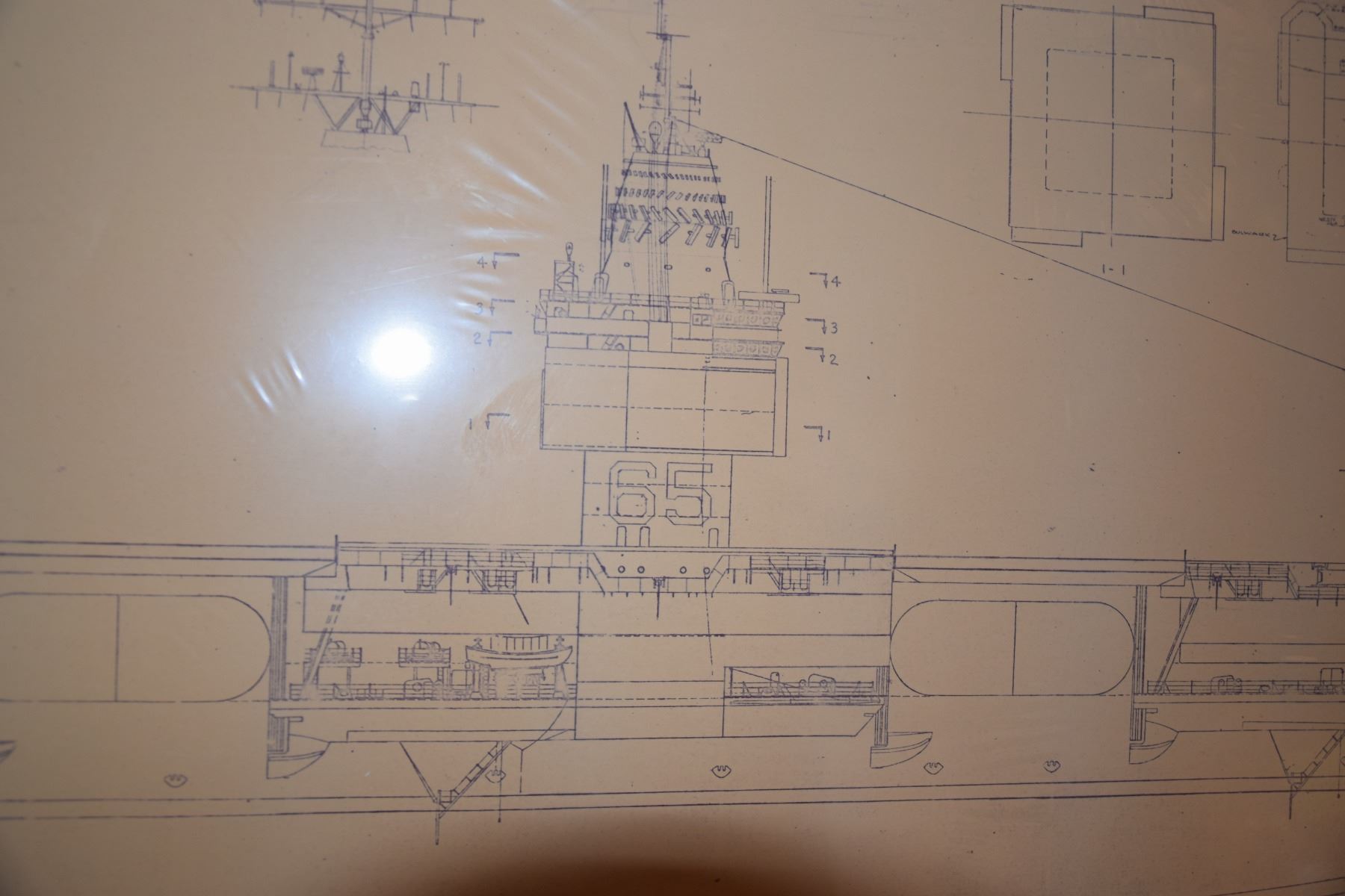 FRAMED WARSHIP DRAWINGS, USS ENTERPRISE (SVN-65) SHOWING SIDE VIEW OF SHIP (24 1/2" X 88")