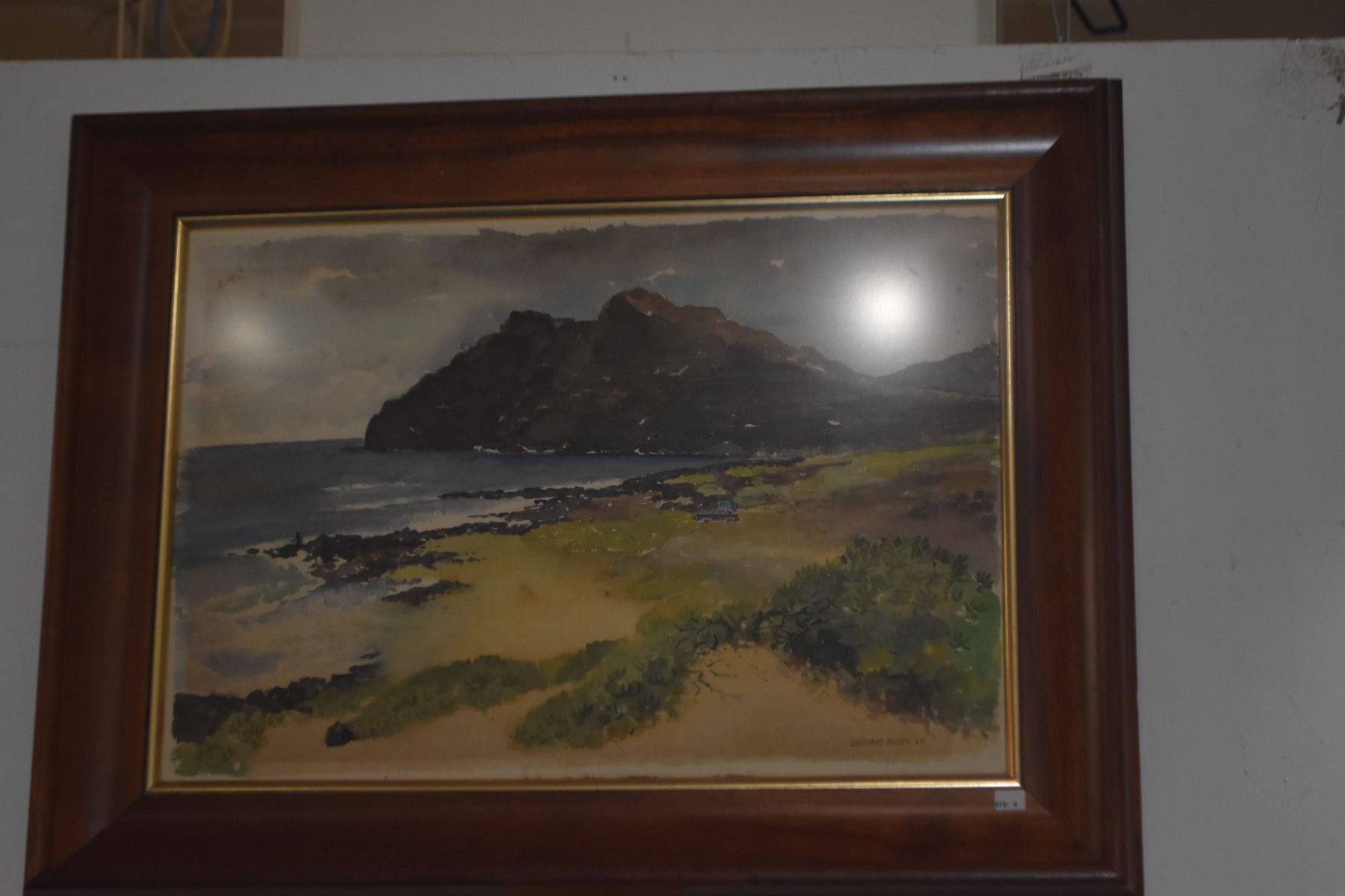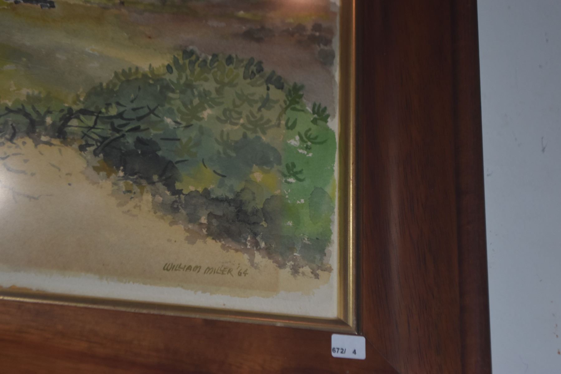 FRAMED WATERCOLOR, COASTAL LANDSCAPE; SIGNED WILLIAM MILLER '64