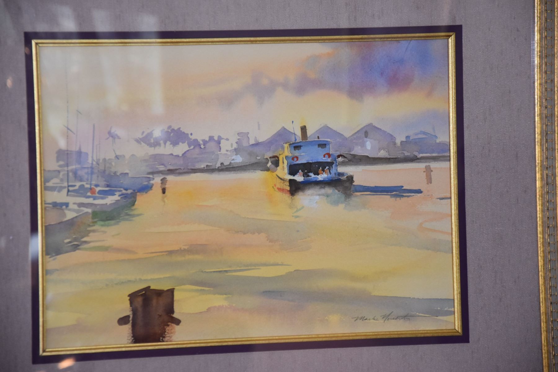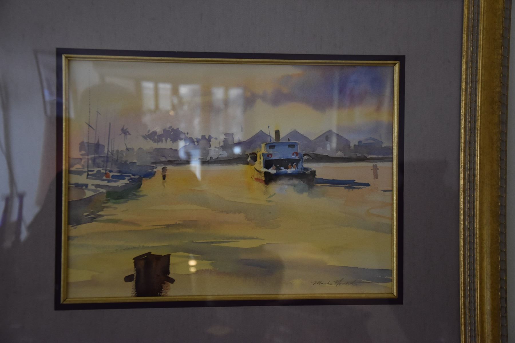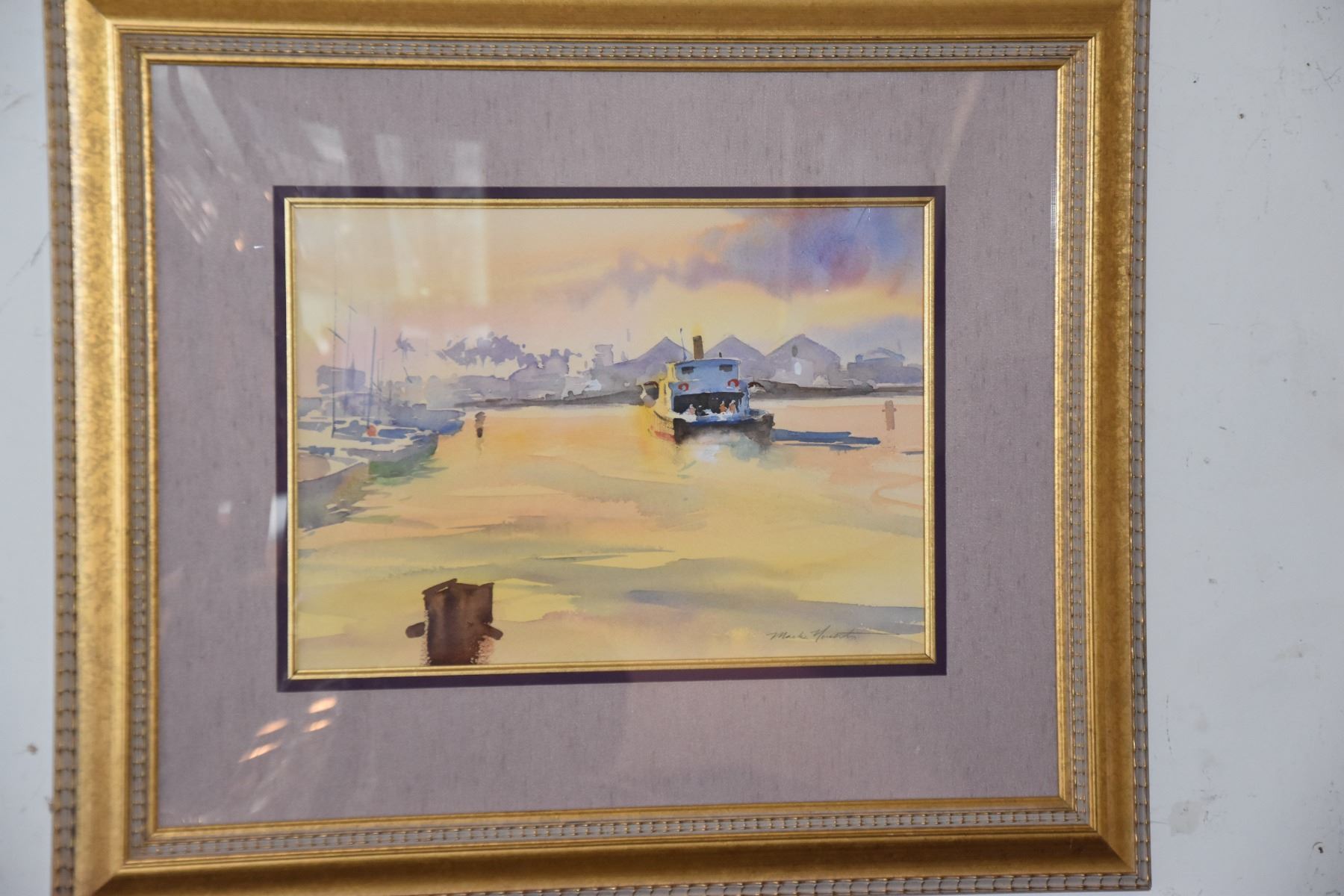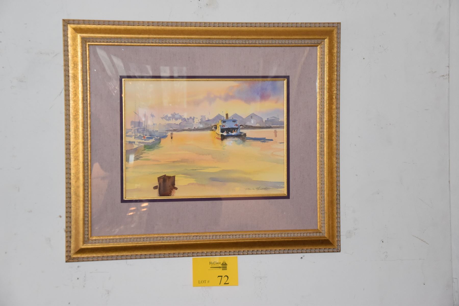 FRAMED WATERCOLOR, HARBOR SCENE; SIGNED (25 1/2" X 21 1/2")