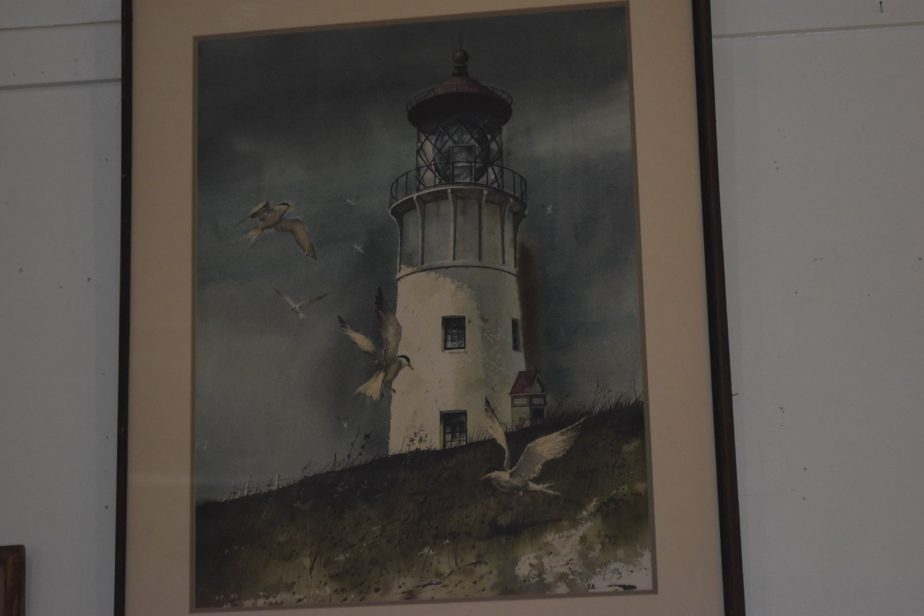 FRAMED WATERCOLOR, "KILAUEA LIGHTHOUSE"; SIGNED ROY HEWETSON '79 (27 1/2" X 35")
