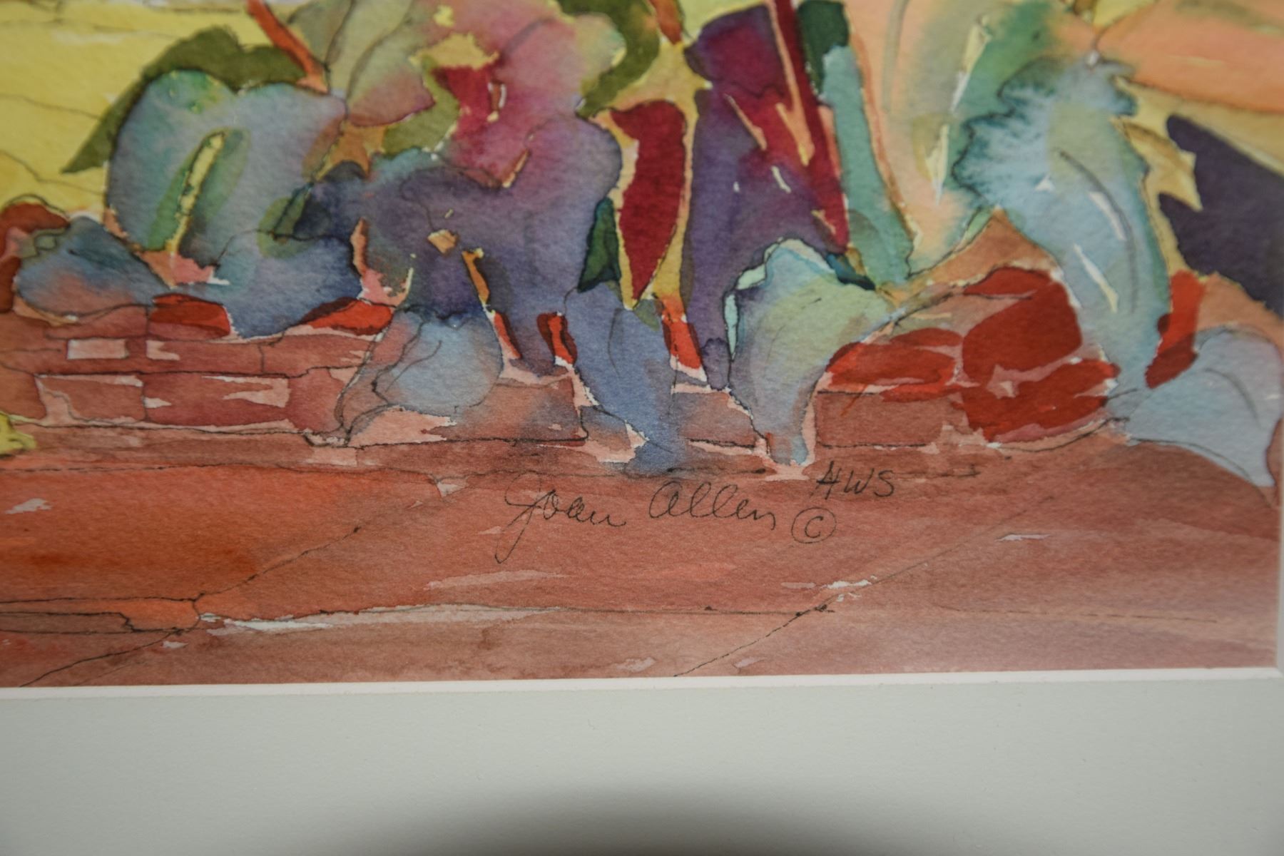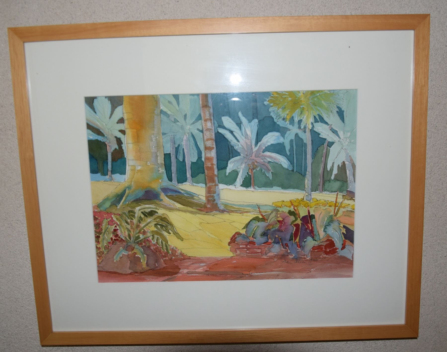 FRAMED WATERCOLOR, "THE PARK"; JOAN ALLEN (21" W X 17 1/4" H)