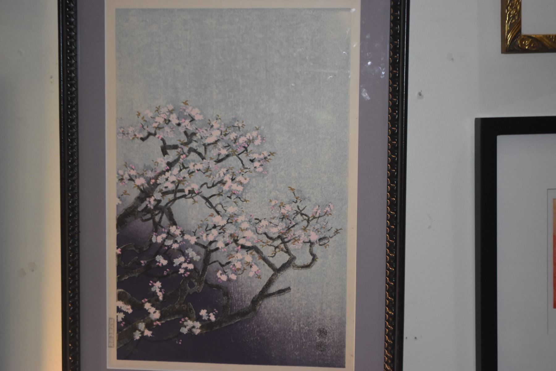 FRAMED WOODBLOCK PRINT, "CHERRY BLOSSOMS" BY EICHI KOTOZUKA (15 1/2" X 21")