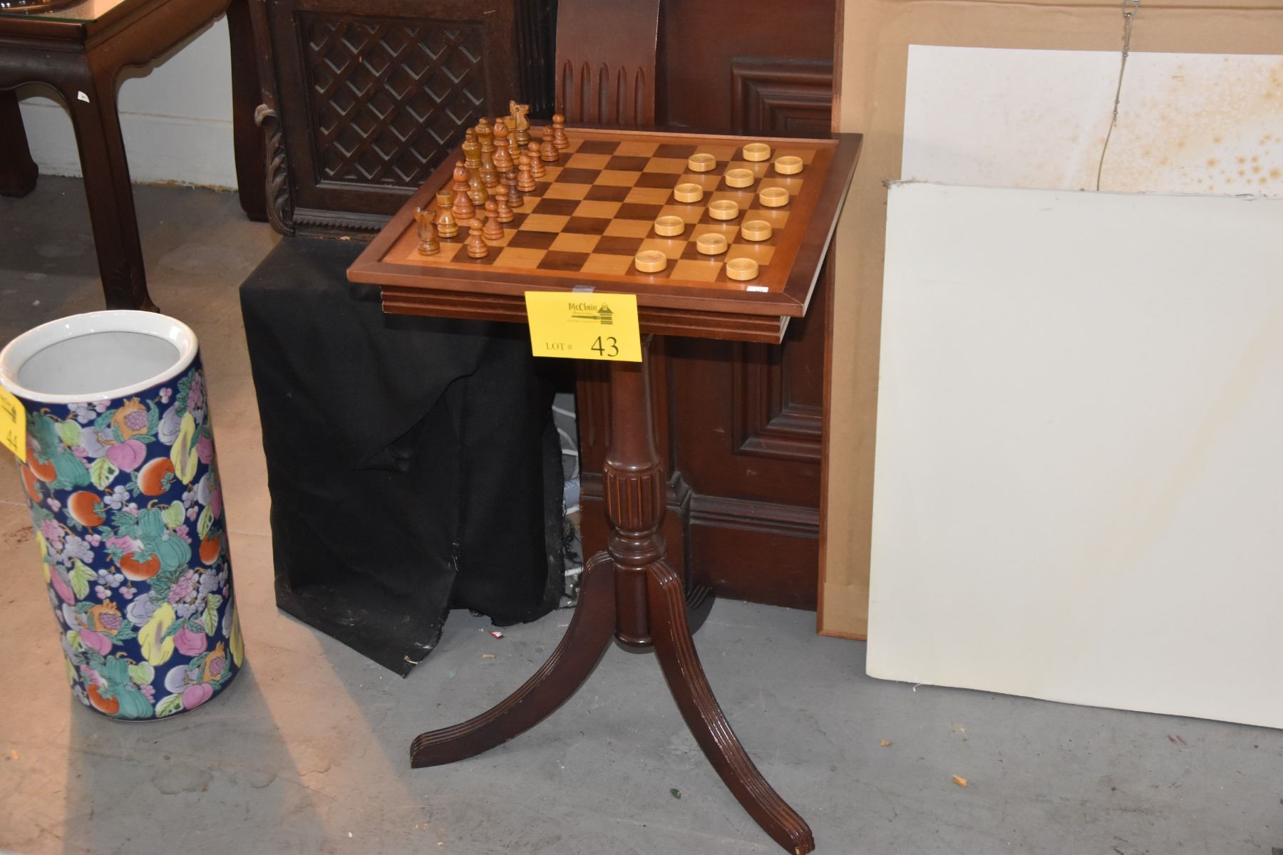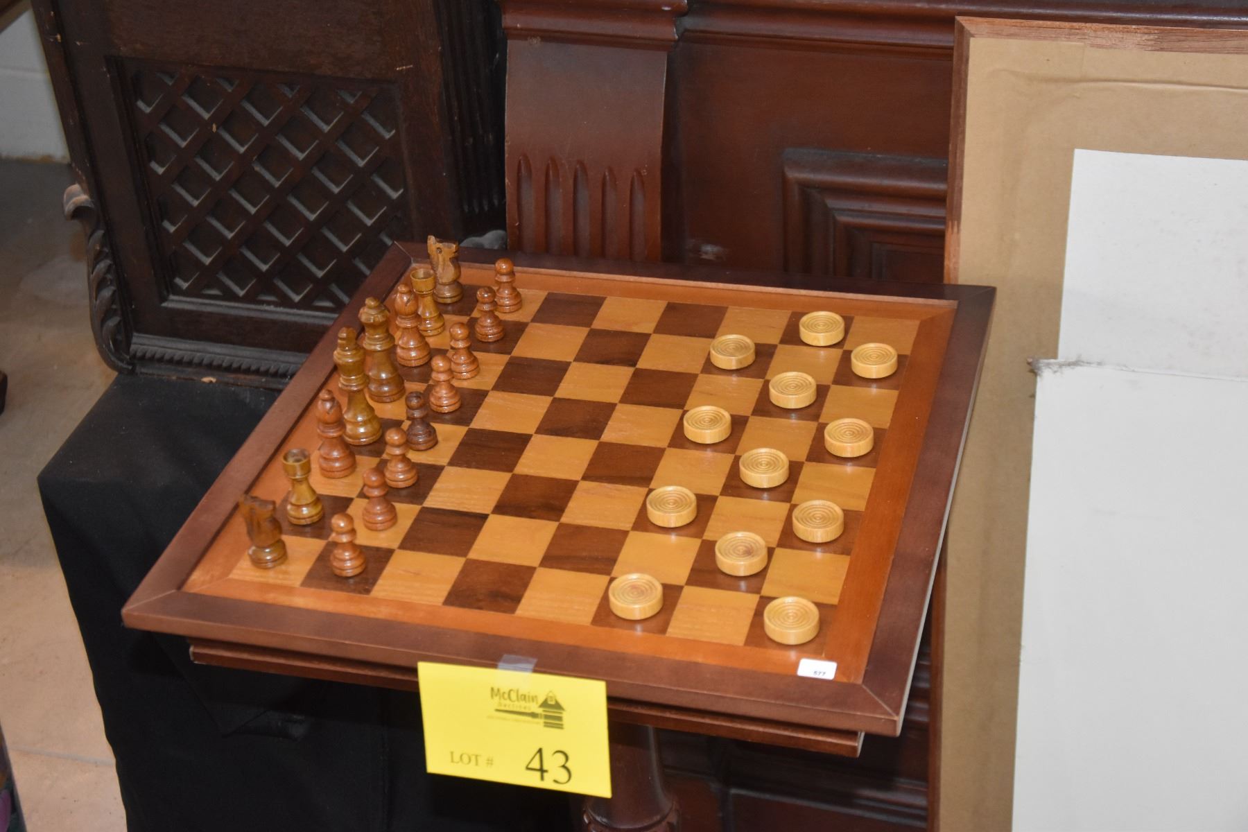 FREE STANDING GAME BOARD W/CHESS & CHECKER PIECES
