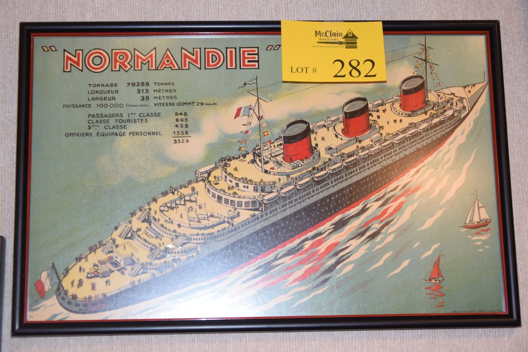 FRENCH LINE: FRAMED ORIGINAL VINTAGE ADVERTISING POSTER, SS NORMANDIE (19" X 12")