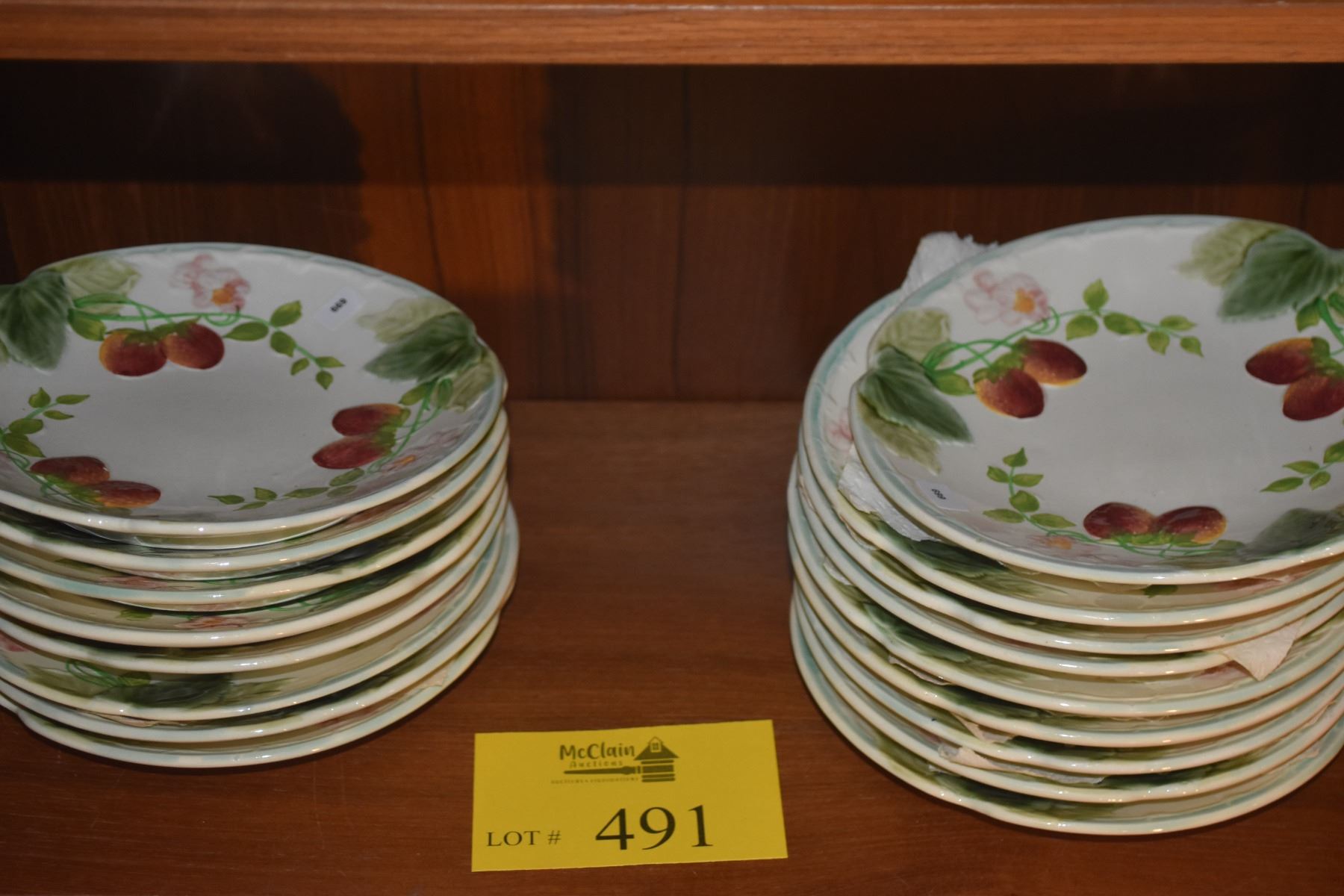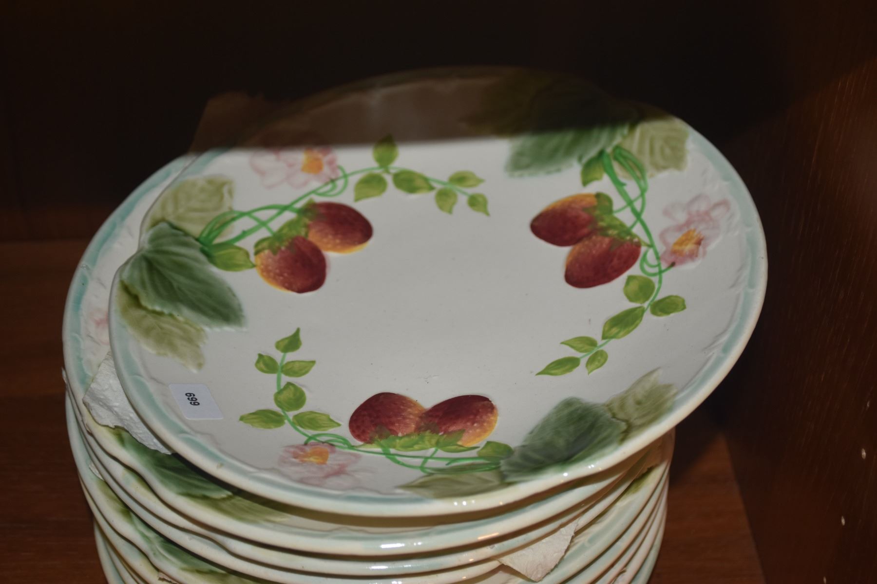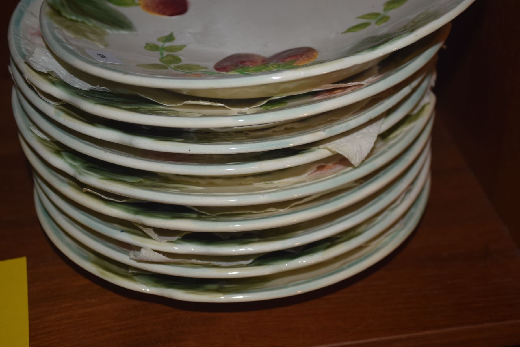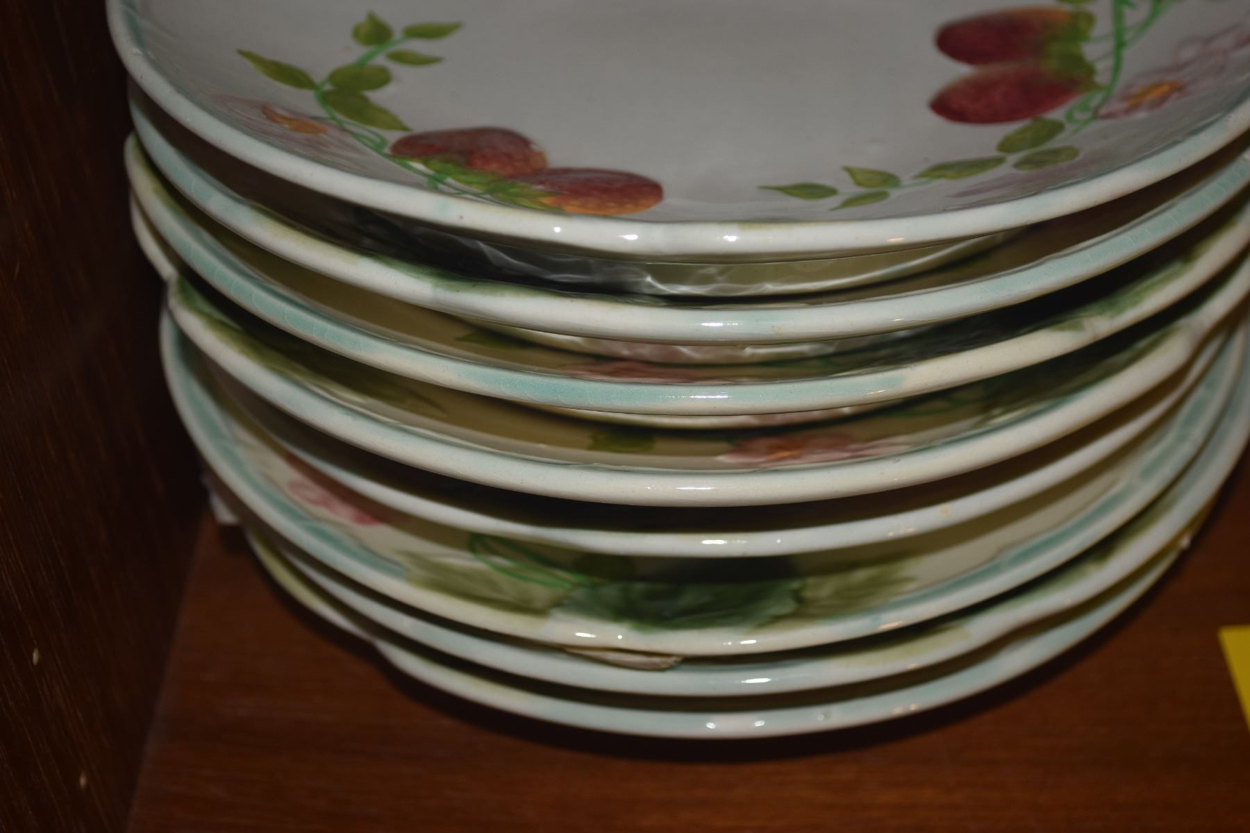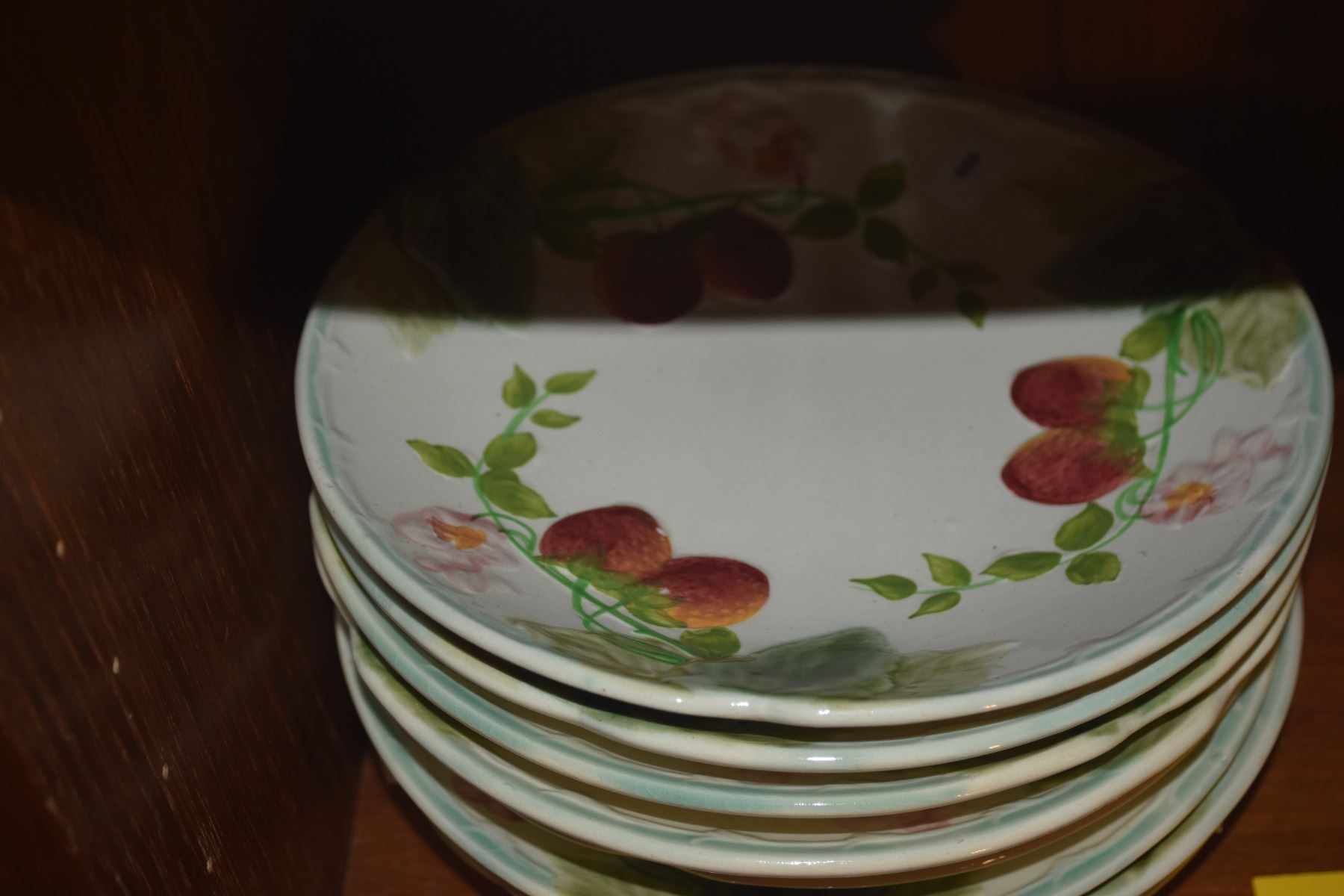 FRENCH MAJOLICA PLATES W/STRAWBERRY & FOLIAGE PATTERN (17 PCS)