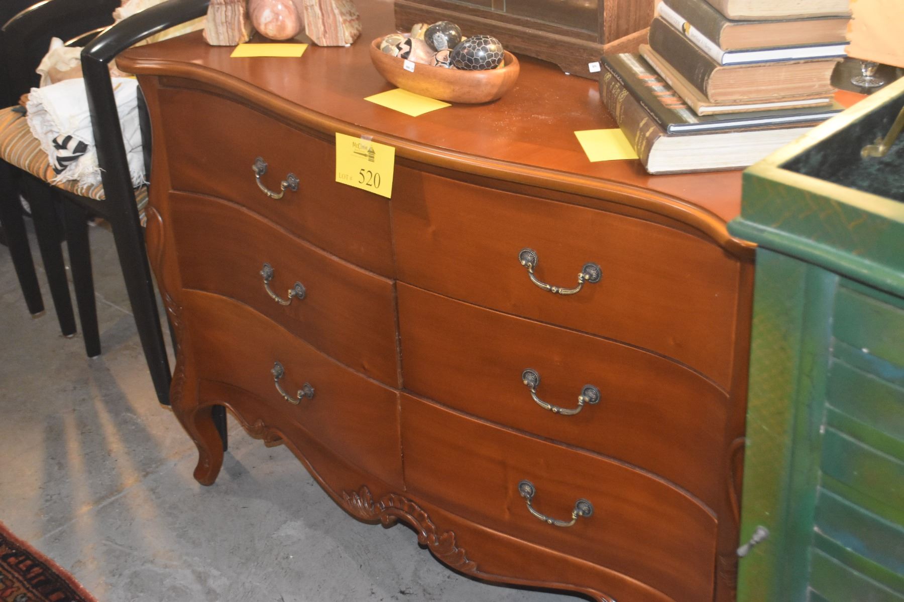 FRENCH PROVINCIAL STYLE SERPENTINE FRONT 6 DRAWER CHEST (47 1/2" X 20" X 33")