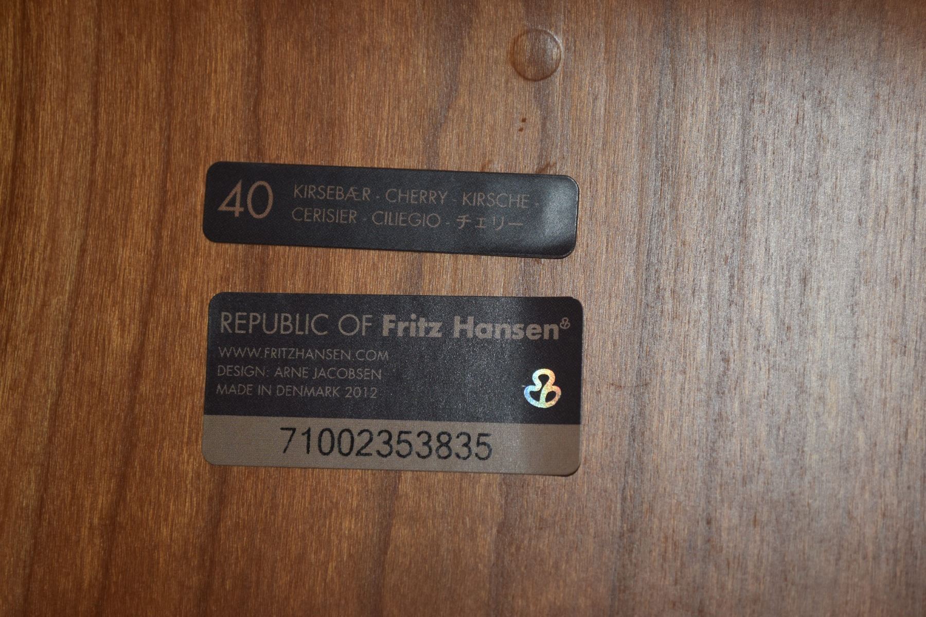 FRITZ HANSEN CHAIR, SERIES 7 DESIGN BY ARNE JACOBSEN - CHERRY, DENMARK 2012, SERIAL NO. 71002353835 (DESIGN WITHIN REACH) (18" X 19" X 31")