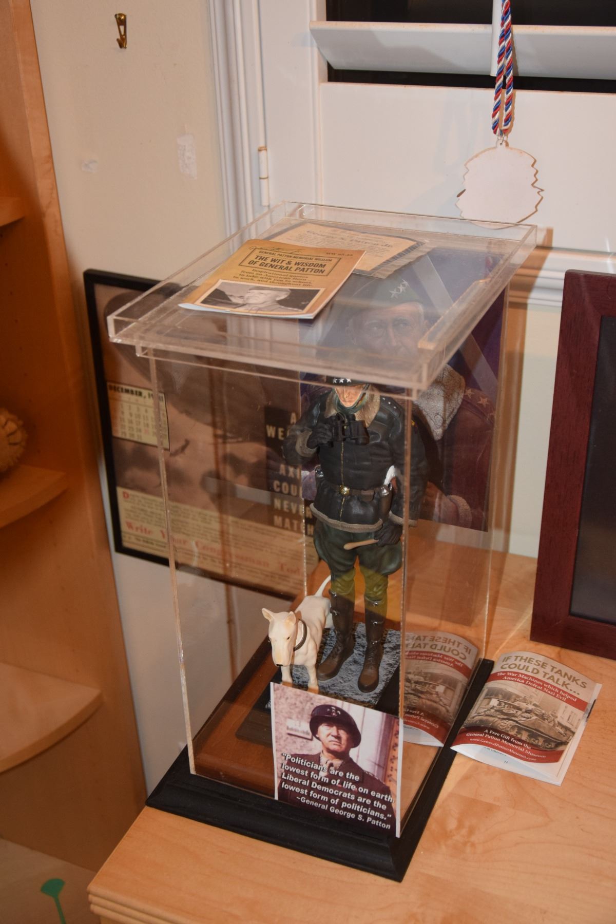 GENERAL MACARTHUR STATUE, GENERAL PATTON FIGURE & MODEL TANK (FRANKLIN MINT)