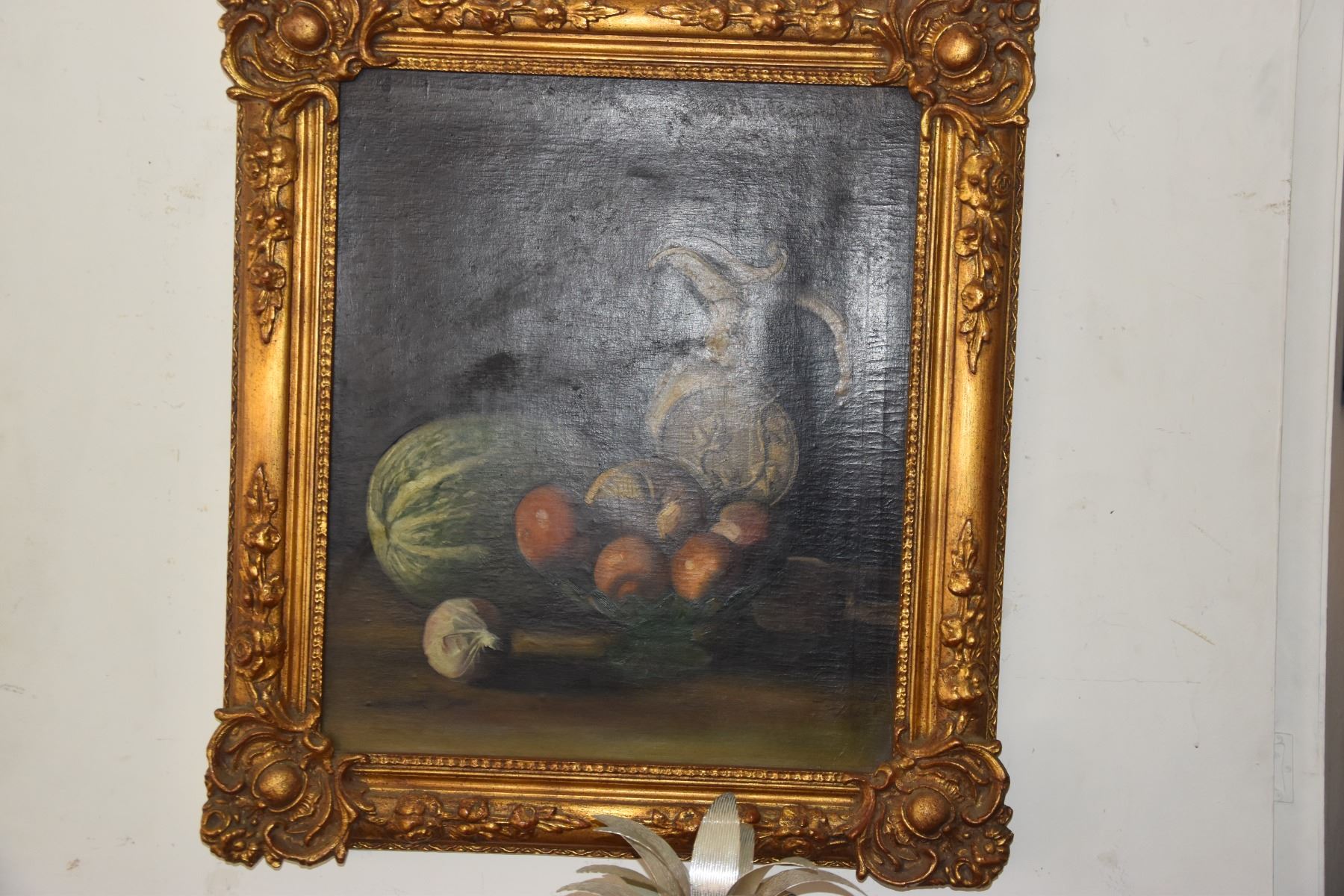 GILT FRAMED OIL ON CANVAS, "STILL LIFE"; SIGNED (28 1/2" X 32 1/2")