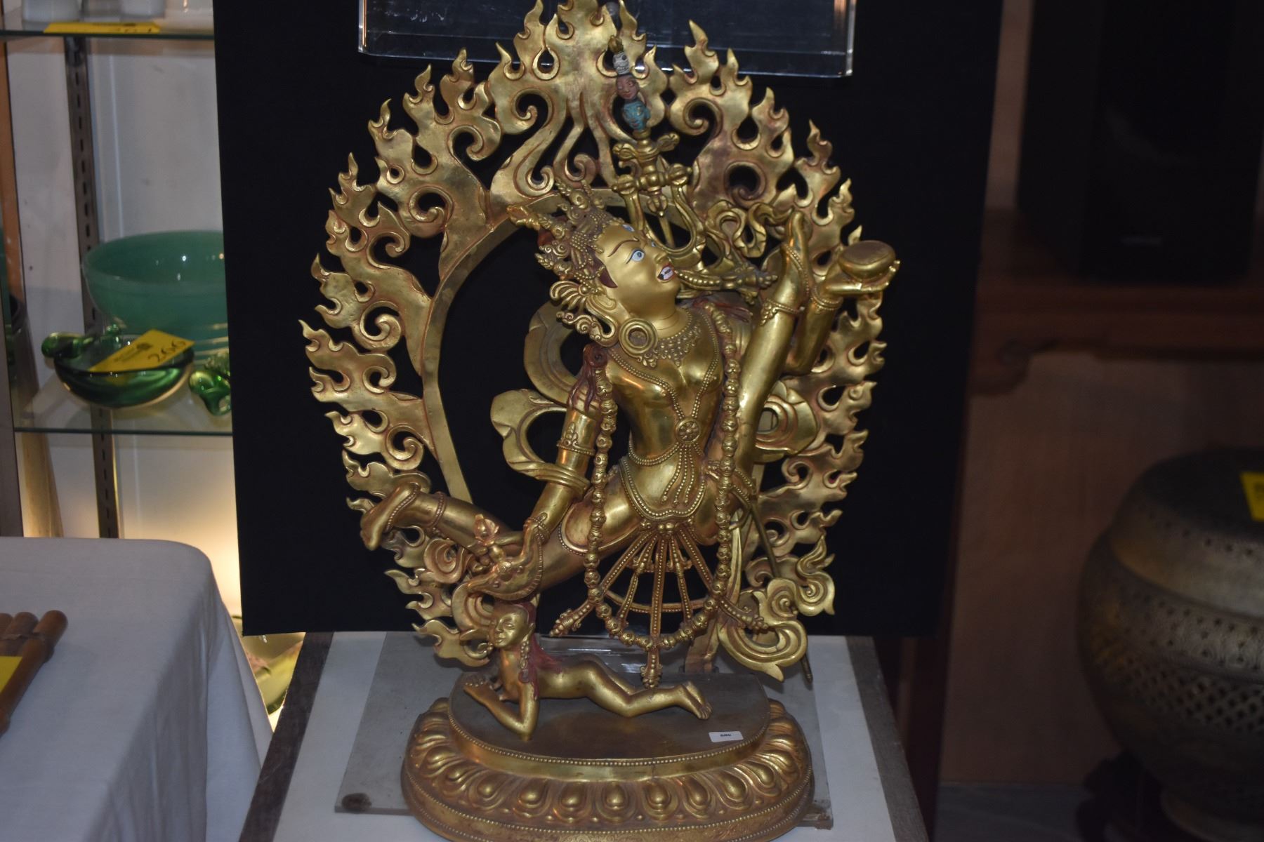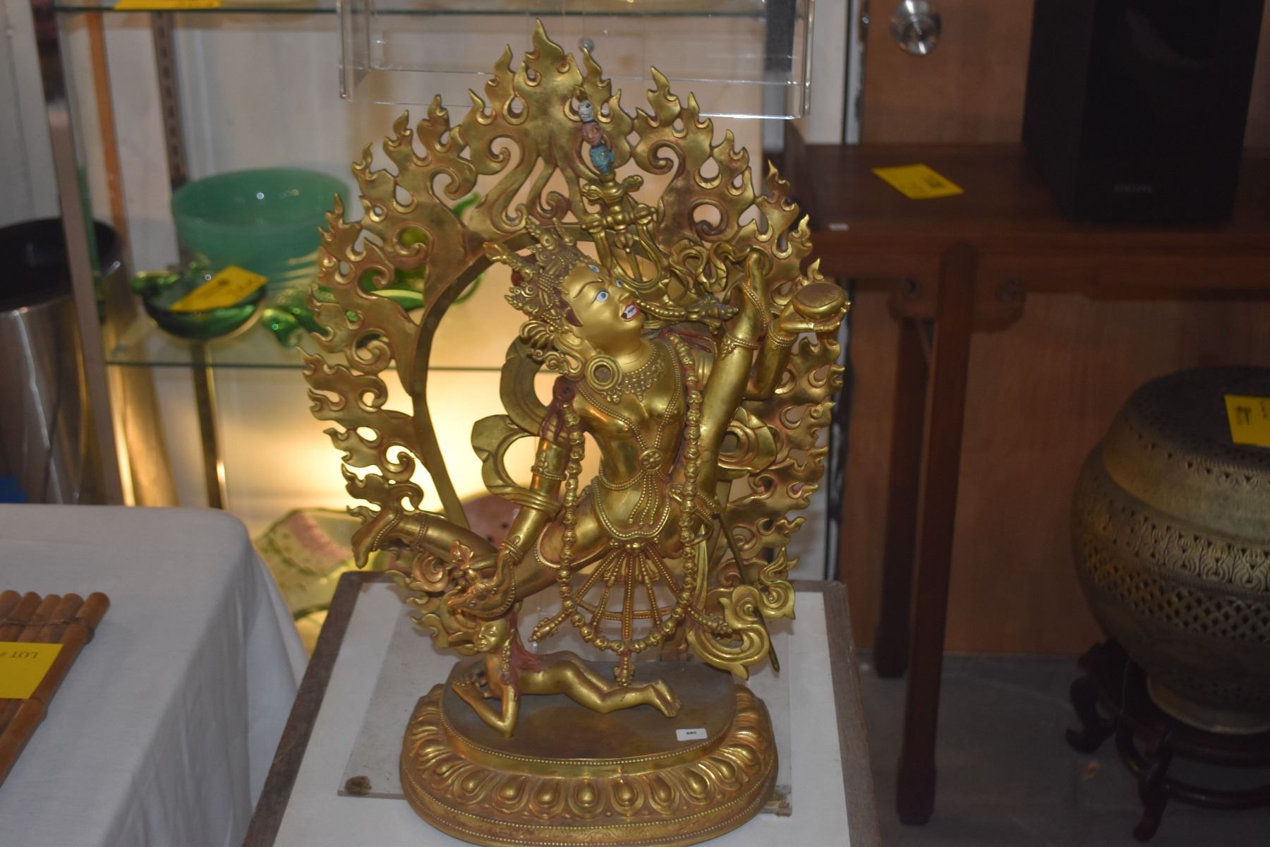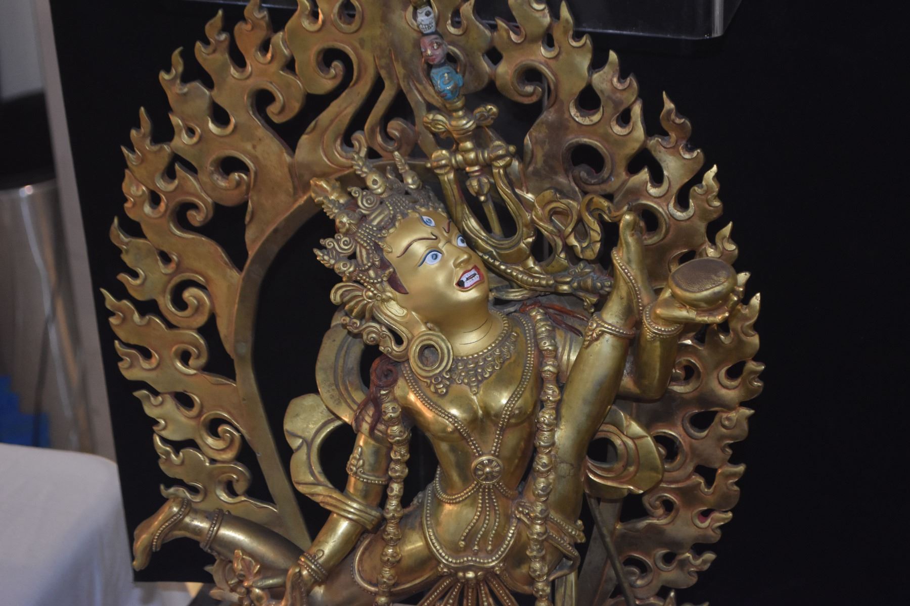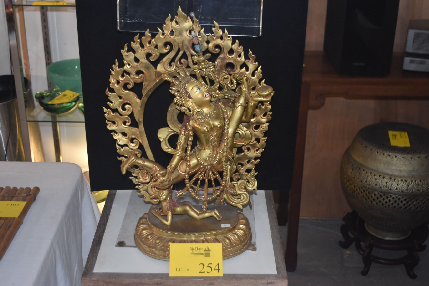 GILT NEPAL TIBETAN BUDDHIST DEITY, "VAJRAYOGINI" (18 3/4")
