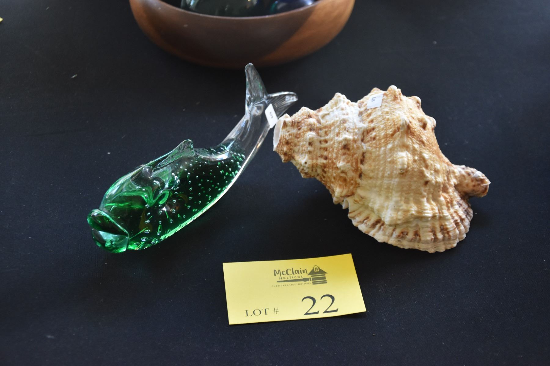 GLASS FISH SCULPTURE & SEA SHELL (2 PCS)