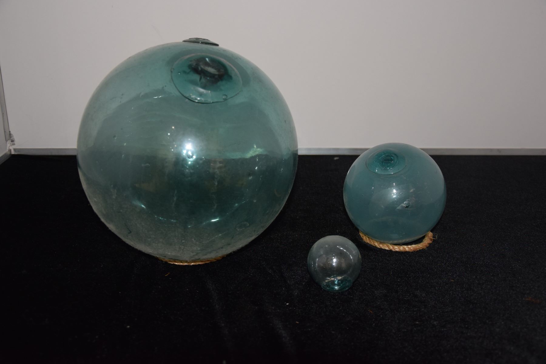 GLASS FISHING FLOATS (29" HOKUYO GLASS CO., 15 1/2" & 7") (3 PCS)
