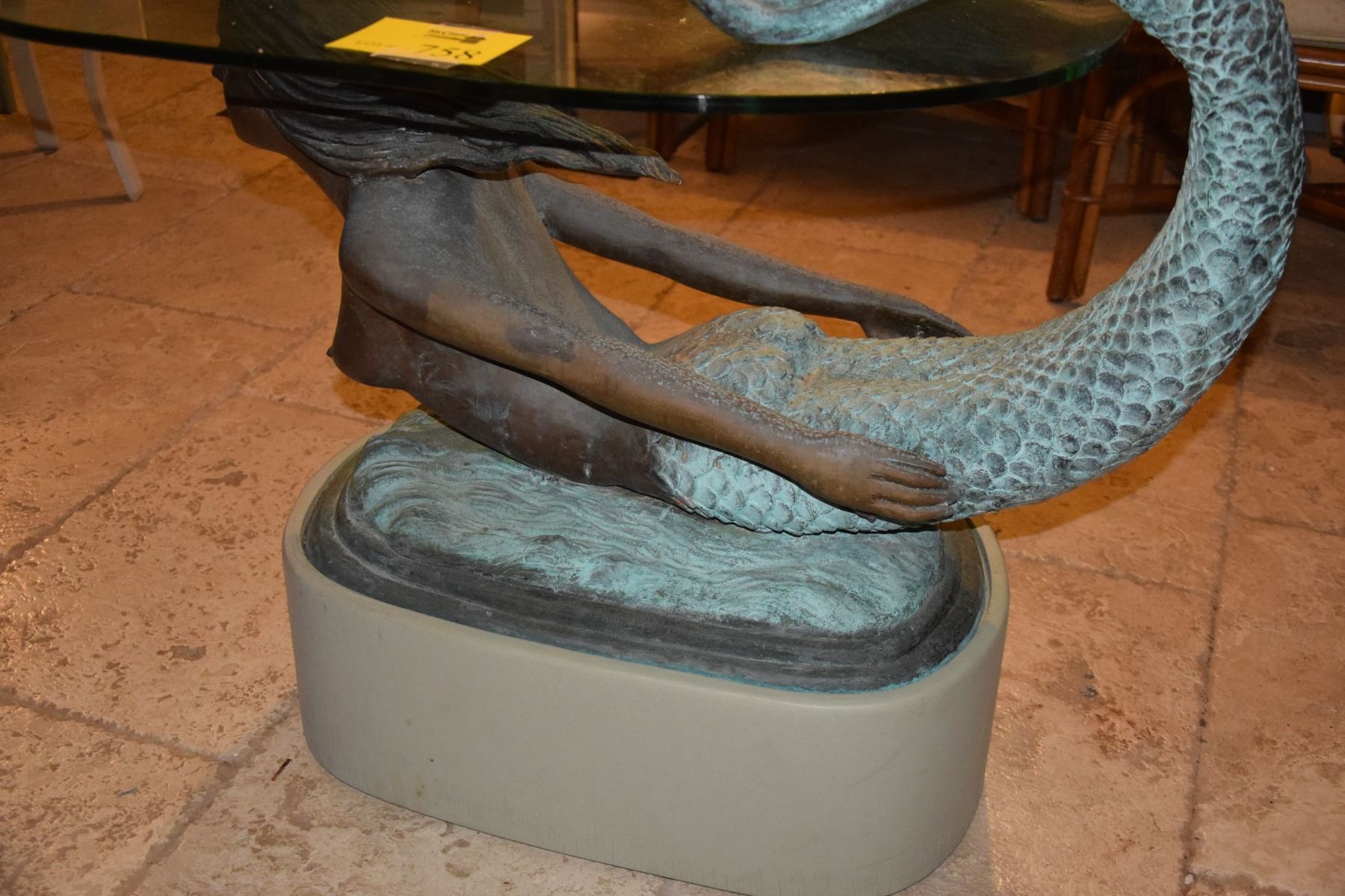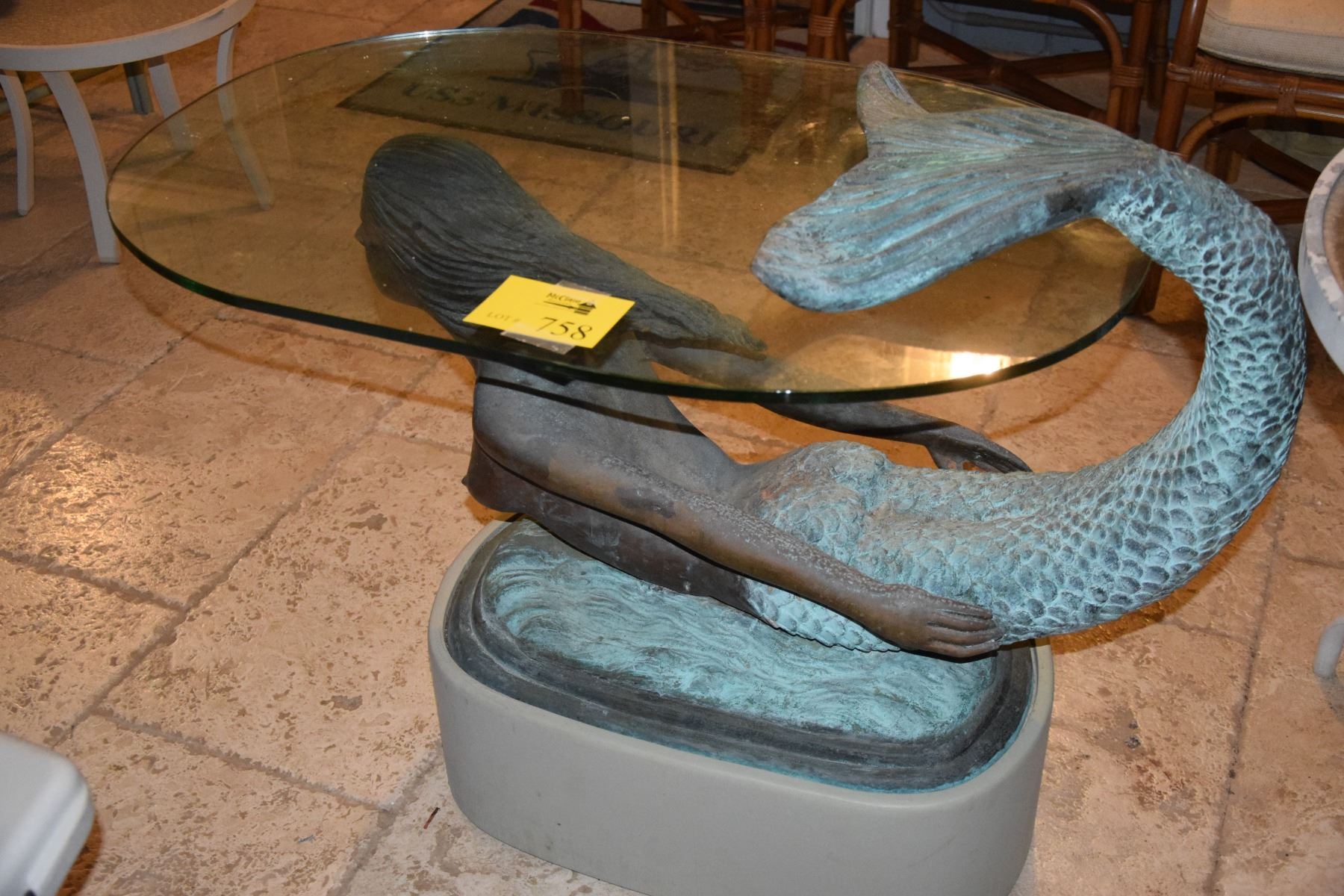 GLASS TOP TABLE W/BRONZE MERMAID BASE