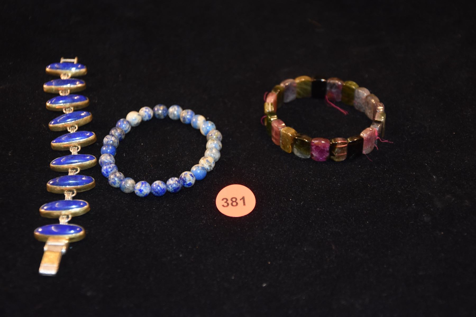 GORHAM STERLING SILVER LAPIS BRACELET; SIGNED & 2 BEAD BRACELETS (3 PCS)